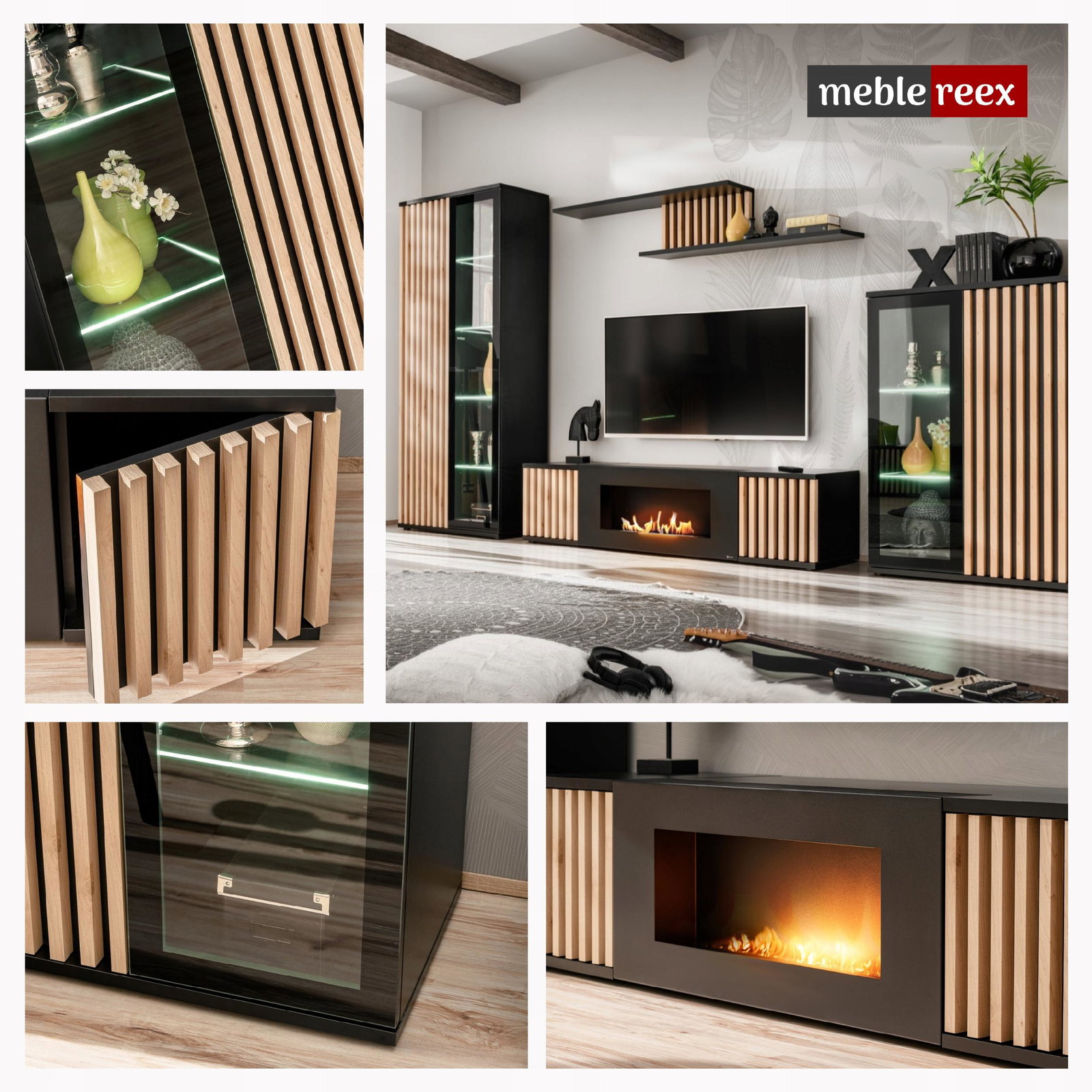 Kolekcja CAMERON łączy wysoką estetykę z funkcjonalnością – szklane witryny z podświetleniem LED, komoda z dużą pojemnością oraz szafka RTV z opcją biokominka to propozycja dla wymagających.