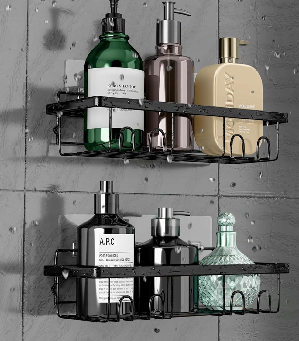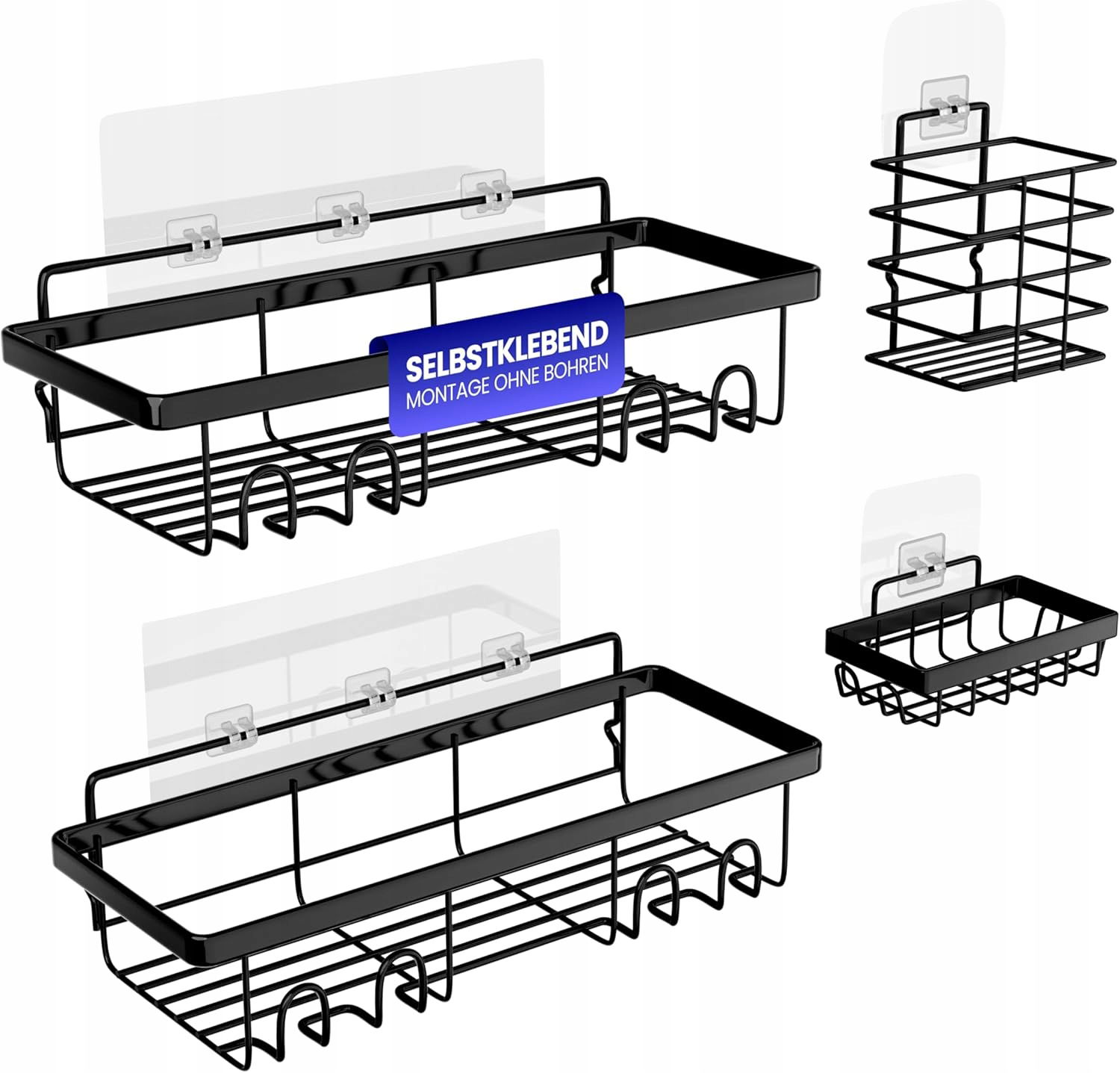 Półki Prysznicowe 4 szt. Czarny Organizer Bez Wiercenia Łazienka Rome