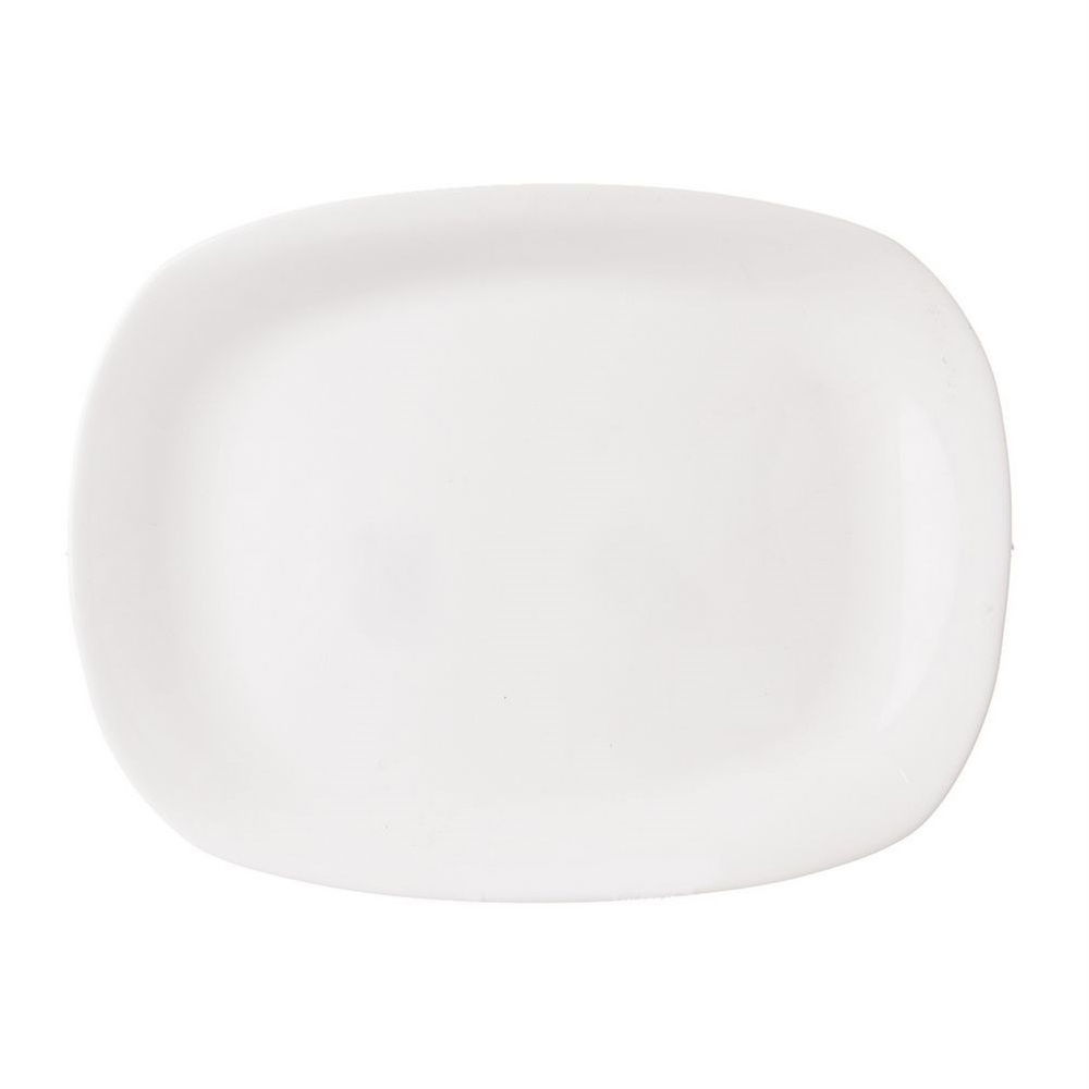 Prostokątny półmisek wykonany z białego szkła. Talerz wykorzystamy do serwowania wszelkiego rodzaju dań, przystawek, ale również efektownych deserów. Łatwy w czyszczeniu i wygodny w użytkowaniu. Talerz utrzymany jest w klasycznym stylu, więc będzie pięknie prezentował się z pozostałą zastawą stołową. Dania umieszczone na półmisku prezentują się niezwykle efektownie.