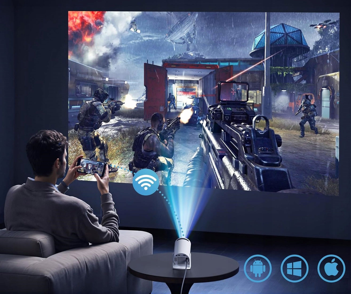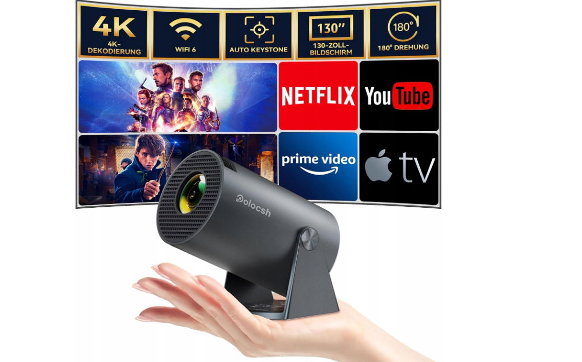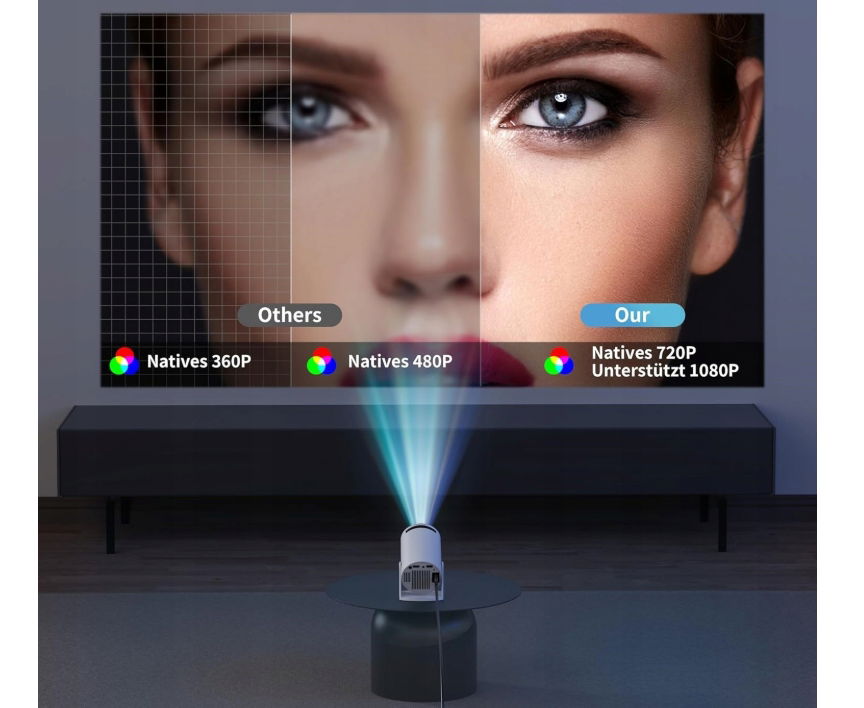 - Android 11.0 i 720P Native: inteligentny projektor z natywnym 1280 x 720P obsługuje 1920 x 1080P i 4K. Jasność wynosi 10000 lumenów i wysoki współczynnik kontrastu 15000:1, 99% ultra-szeroka gama kolorów NTSG zapewnia naturalne przejścia kolorów z bardziej żywymi i wyraźniejszymi szczegółami obrazu. Wyposażony w system Android TV, który pozwala cieszyć się popularnym ulubionym programem wideo, w tym YouTube/Netflix/Prime Video, bez użycia TV Stick.