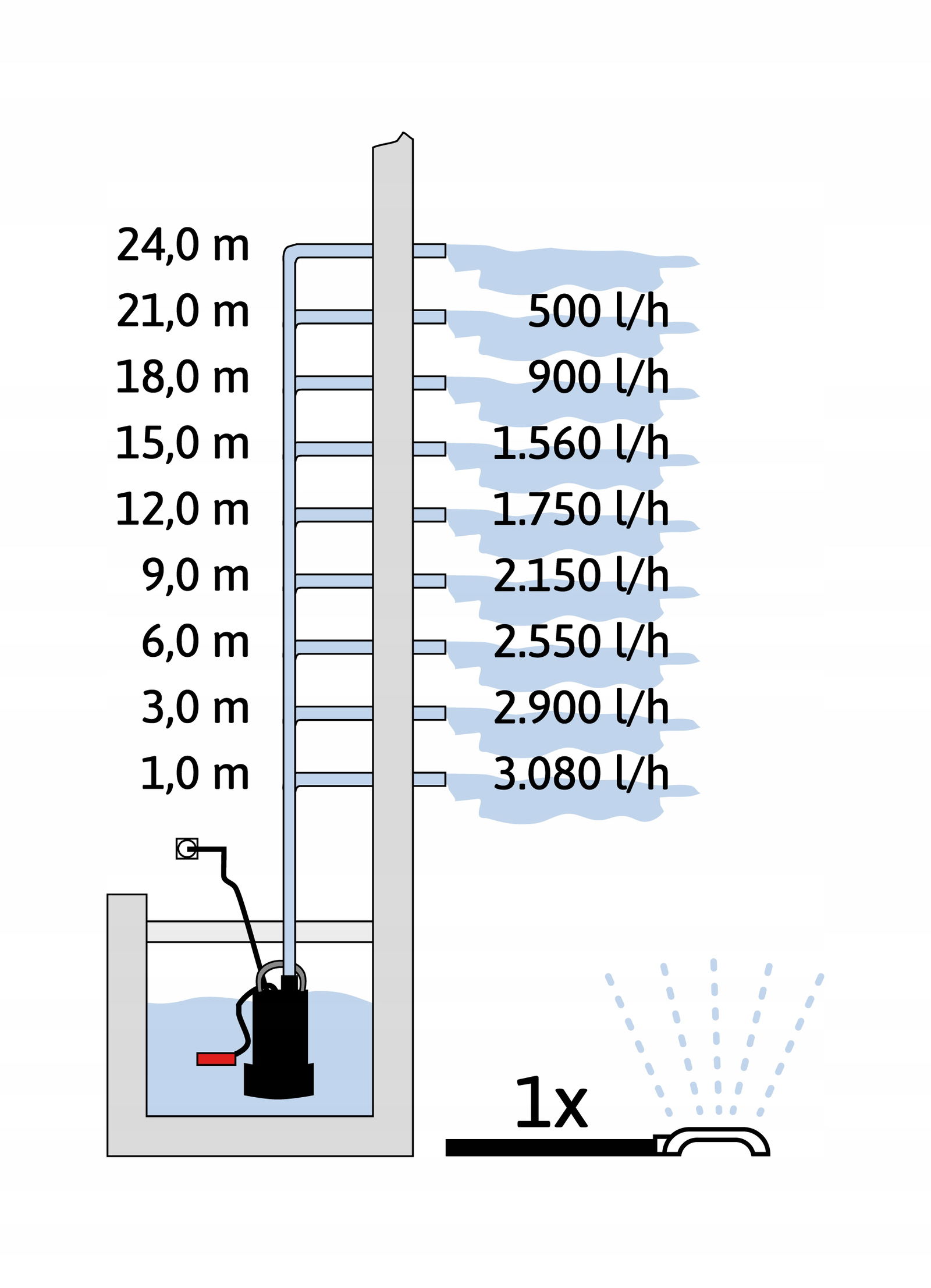 - Maksymalna wysokość podnoszenia wody (m): 24
