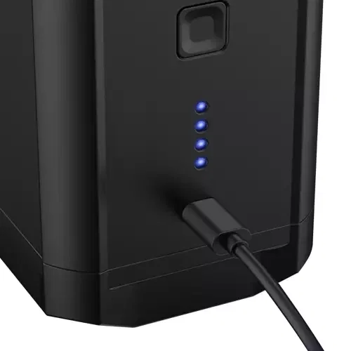 - BEZPRZEWODOWA / NA AKUMULATOR – najważniejszą funkcją pompki jest to, że jest bezprzewodowa. Możesz napompować materac nawet na plaży gdzie nie masz dostępu do sieci energetycznej. Akumulator, który jest wbudowany w pompkę ma pojemność 5000 mAh. O stanie naładowania akumulatora informują nas 4 diody na przodzie pompki. Ładowanie akumulatora odbywa się za pomocą kabla USB typ-C.