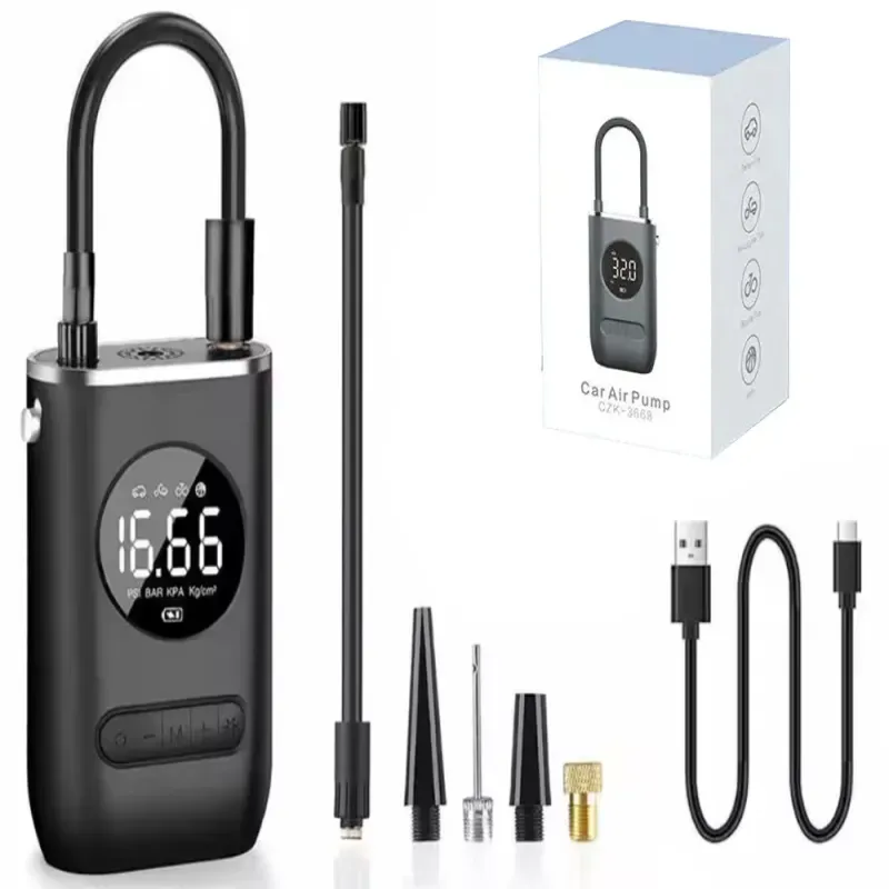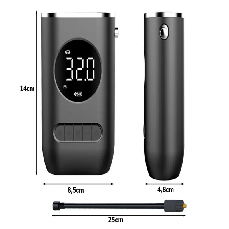 Przenośny mini kompresor elektryczny z cyfrowym wyświetlaczem to idealne rozwiązanie dla każdego kierowcy, rowerzysty i użytkownika sprzętu sportowego. Dzięki kompaktowym rozmiarom zmieści się w schowku samochodowym, plecaku czy torbie podróżnej, a jego wszechstronność pozwala na pompowanie opon samochodowych, rowerowych, piłek oraz materacy.