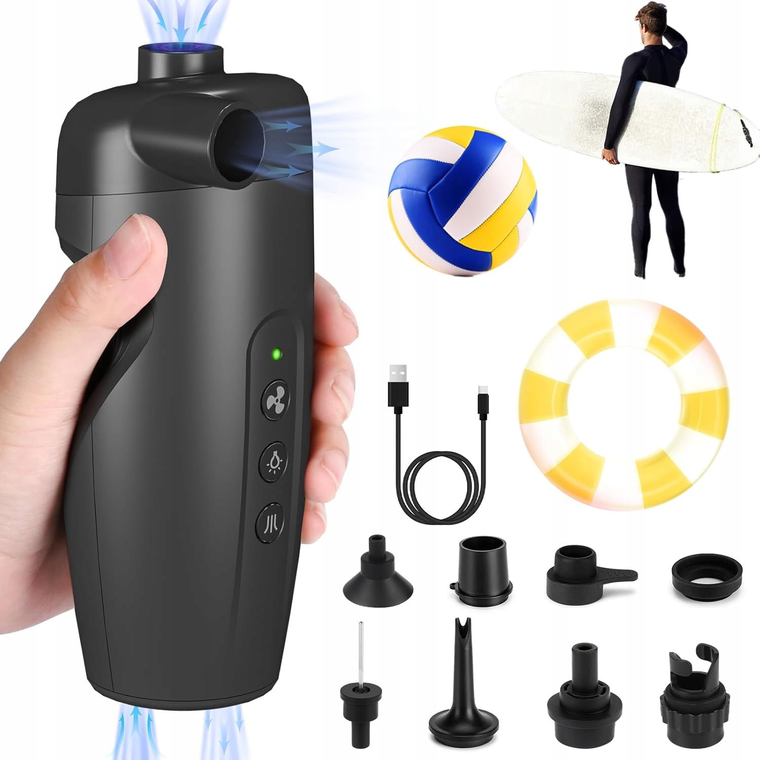- Pompka wyposażona jest w wbudowaną akumulatorową baterię o pojemności 3000 mAh, co umożliwia wygodne użytkowanie bez konieczności podłączania do zasilania. Jest to idealne rozwiązanie podczas podróży, biwakowania czy aktywności na świeżym powietrzu