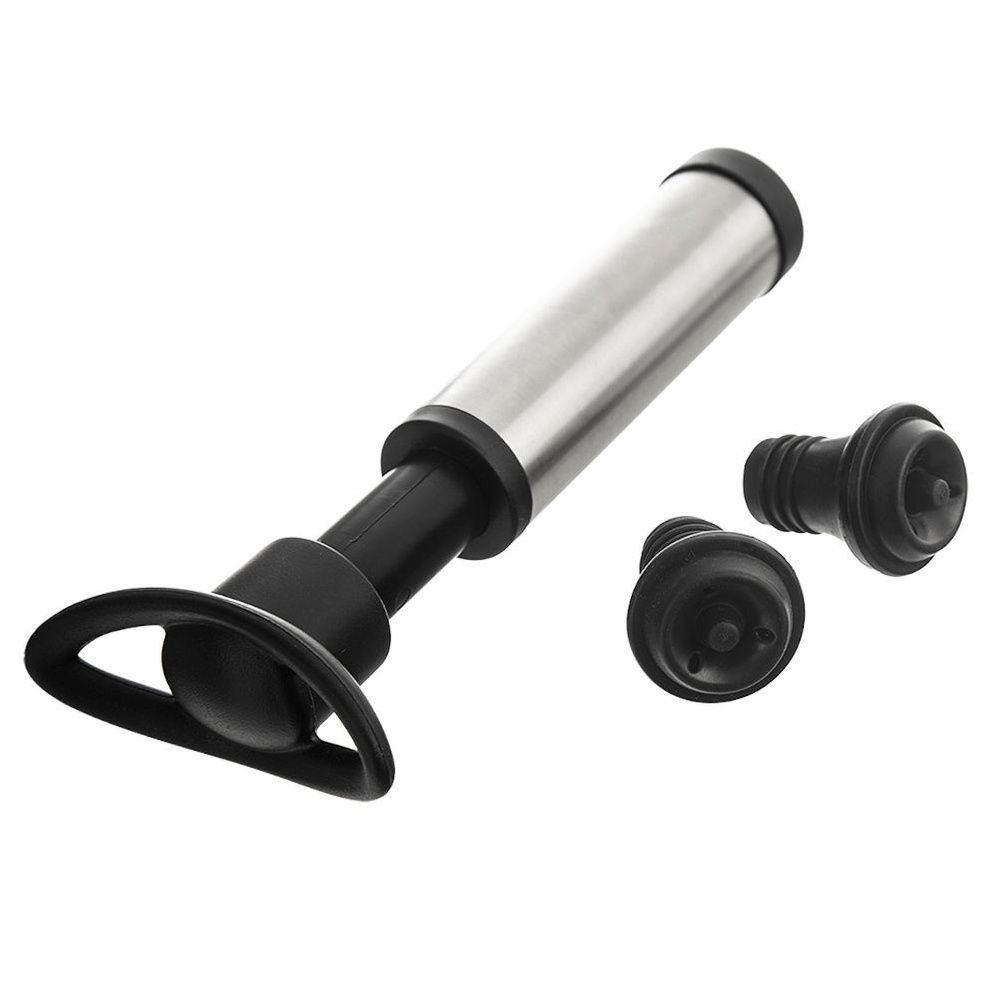Zestaw składający się z pompki oraz korków do butelek. Pozwoli próżniowo zamknąć butelkę z winem. Zestaw pozwoli nam zachować na dłużej świeżość wina po otwarciu. Jest bardzo prosty w obsłudze. Świetnie sprawdzi się na prezent dla bliskich np. z okazji parapetówki.