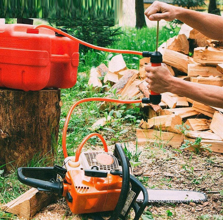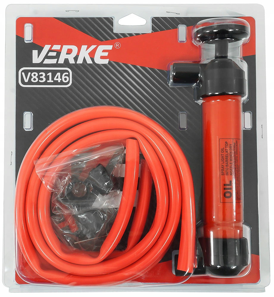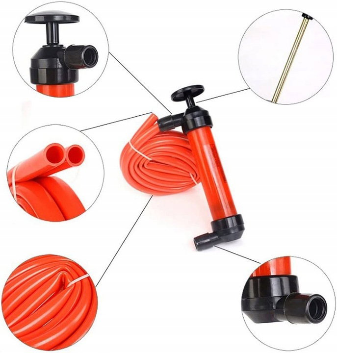 Bardzo łatwa obsługa! Wystarczy zanurzyć jeden koniec przewodu cieczy w płynie, a wężyk wylotowy włożyć do pojemnika i zacząć pompować ciecz tłoczkiem!