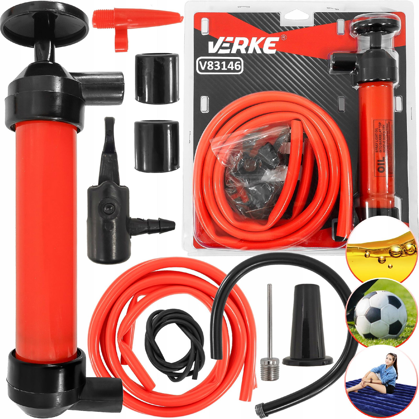 POMPKA RĘCZNA WYMIANY OLEJU WODY PALIWA PIŁEK ROWERU MATERACA V83146 POMPKA