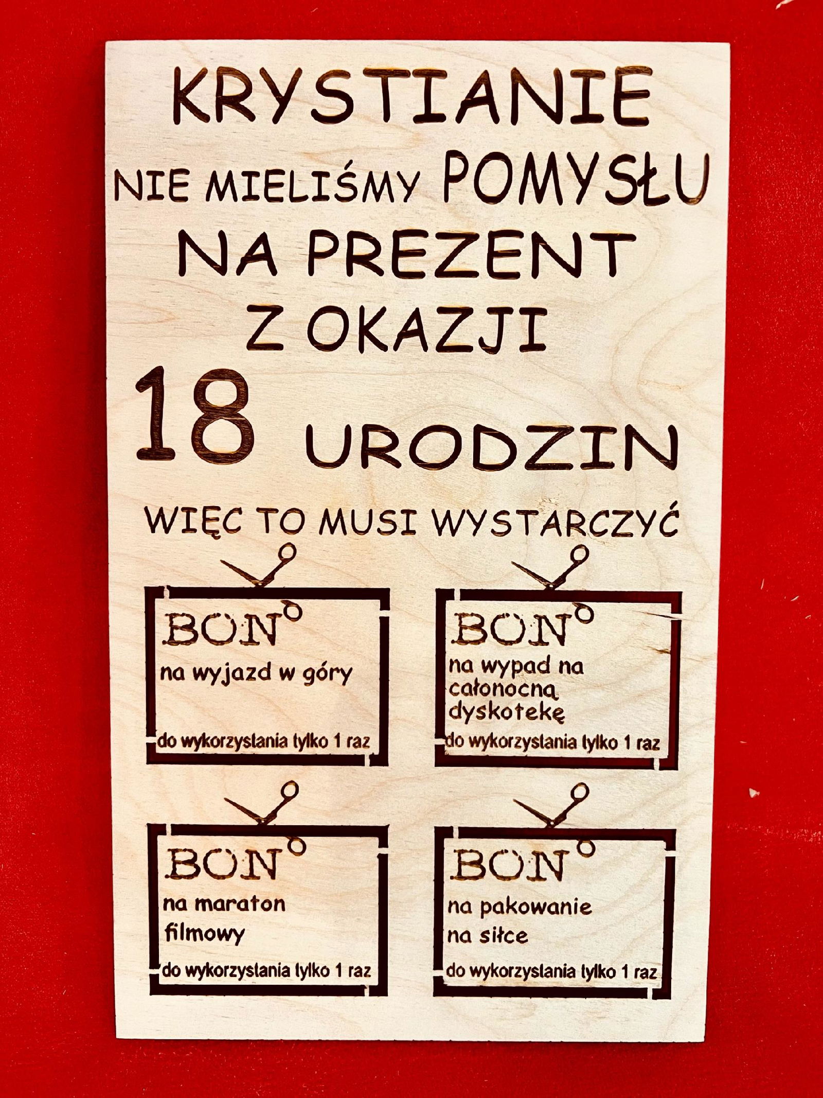 Grawerowana Tabliczka ze sklejki z bonami do wyłamania.
