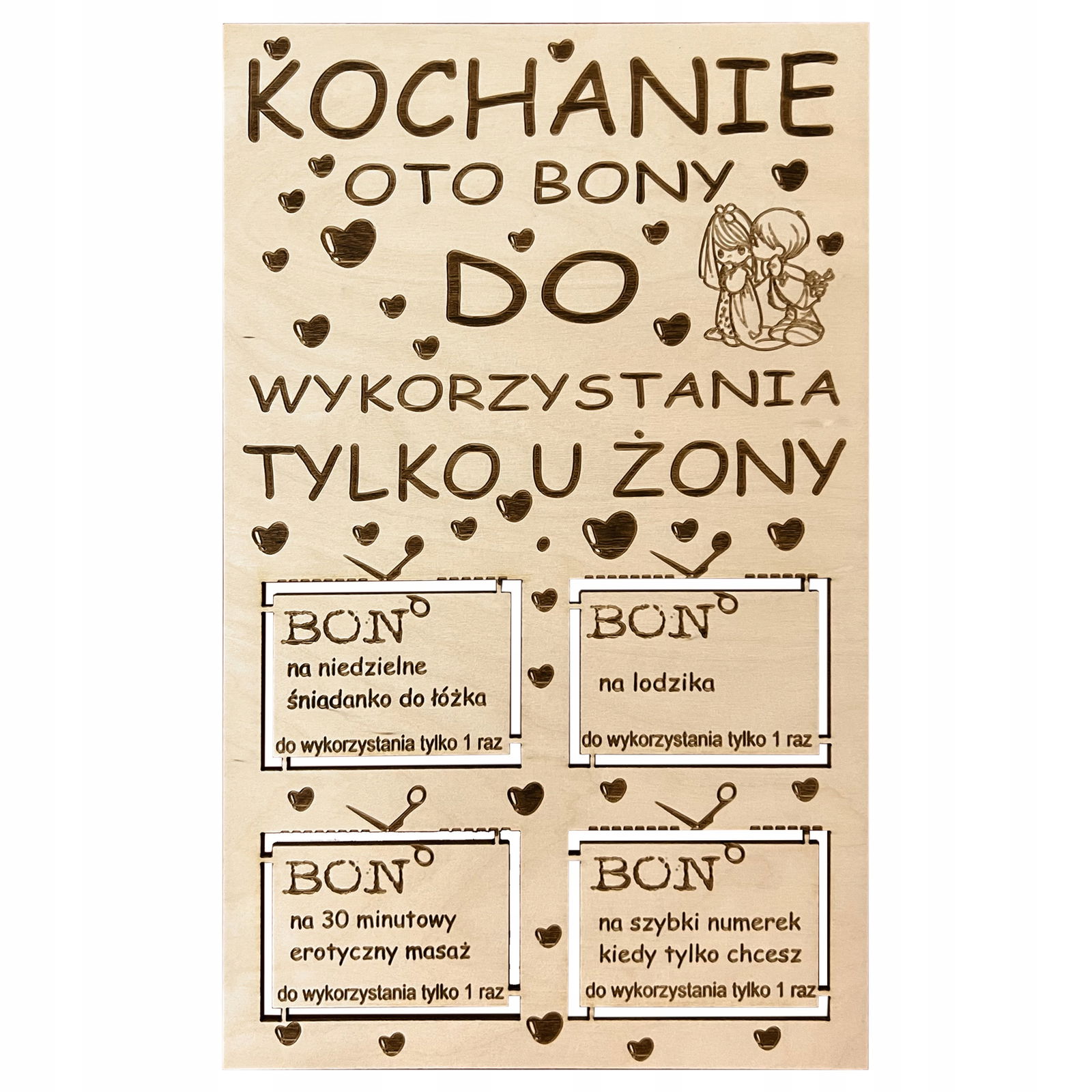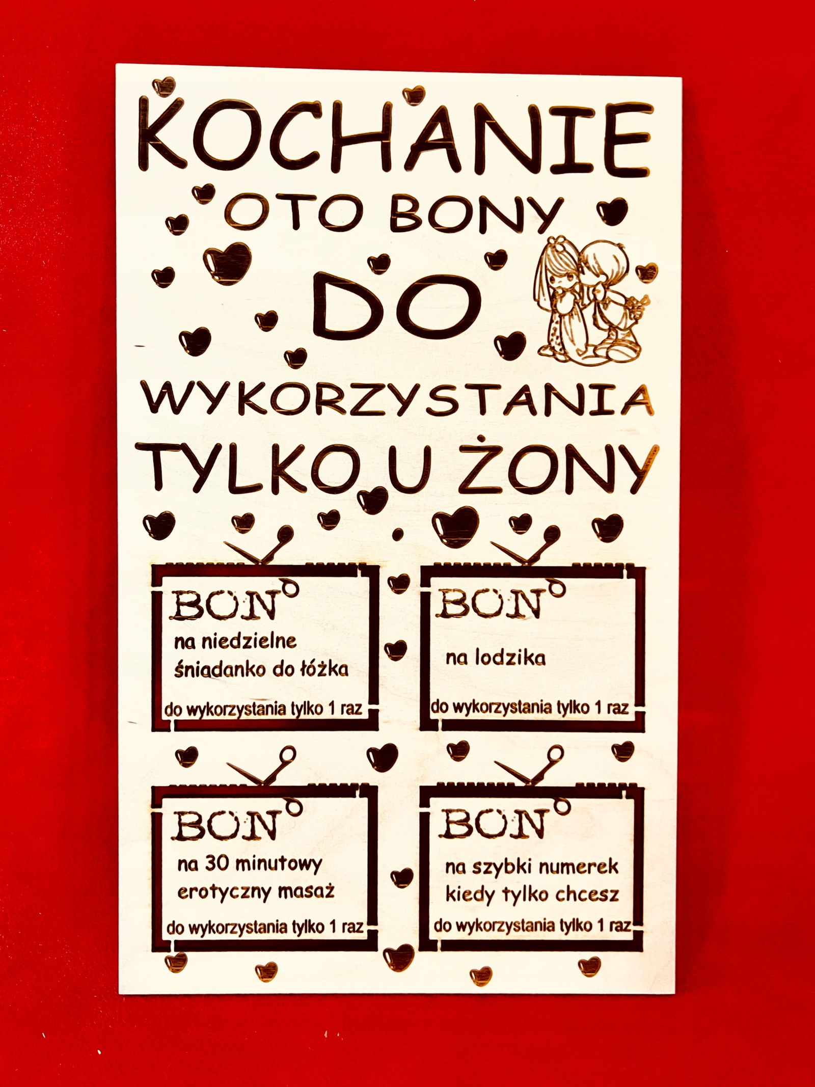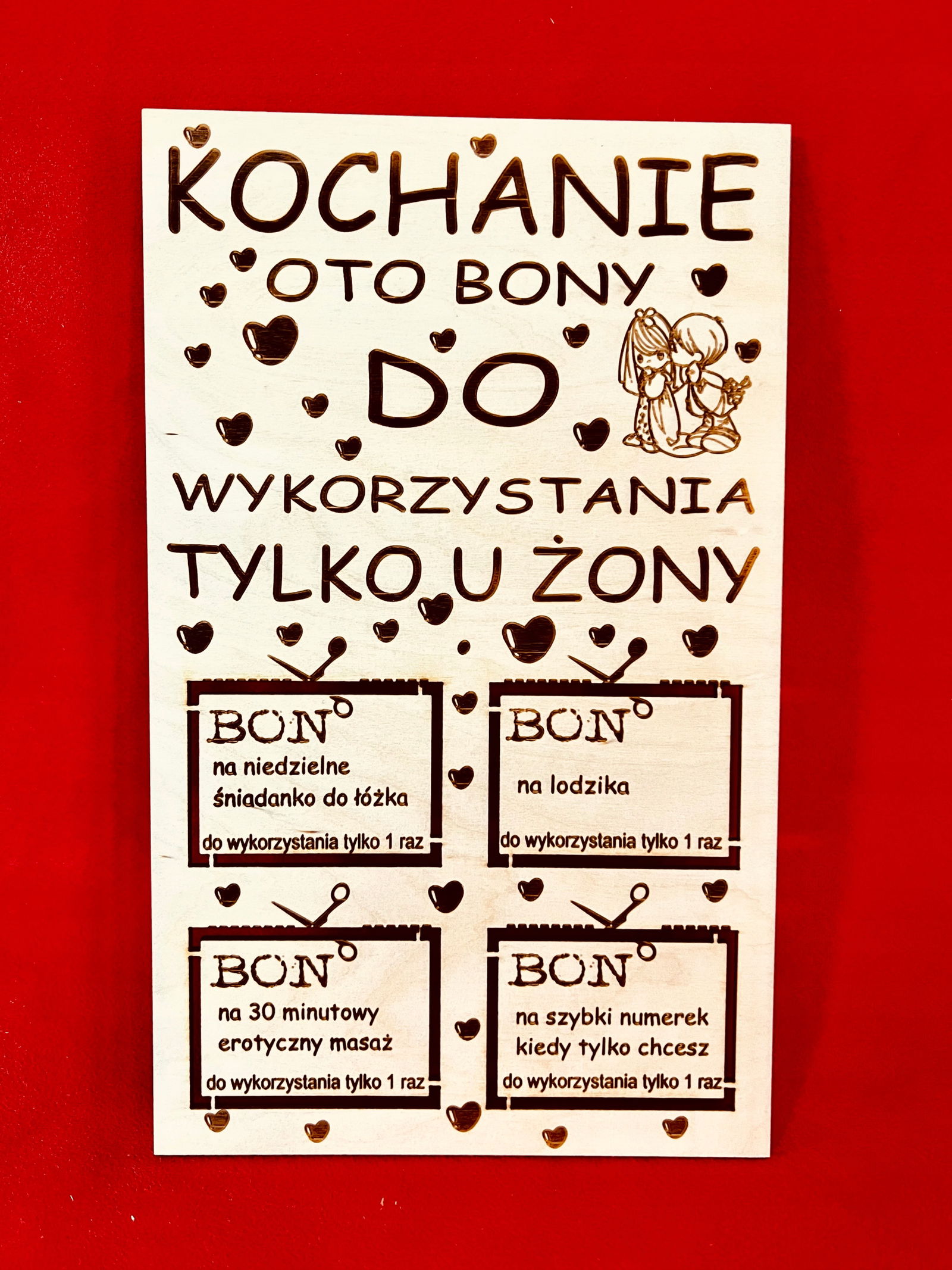 Produkt jest wykonywany na zamówienie, Jeżeli chcesz zmienić sentencje w bonach to nie zapomnij podczas zamawiania napisać jaki tekst mamy wygrawerować w poszczególnych polach.