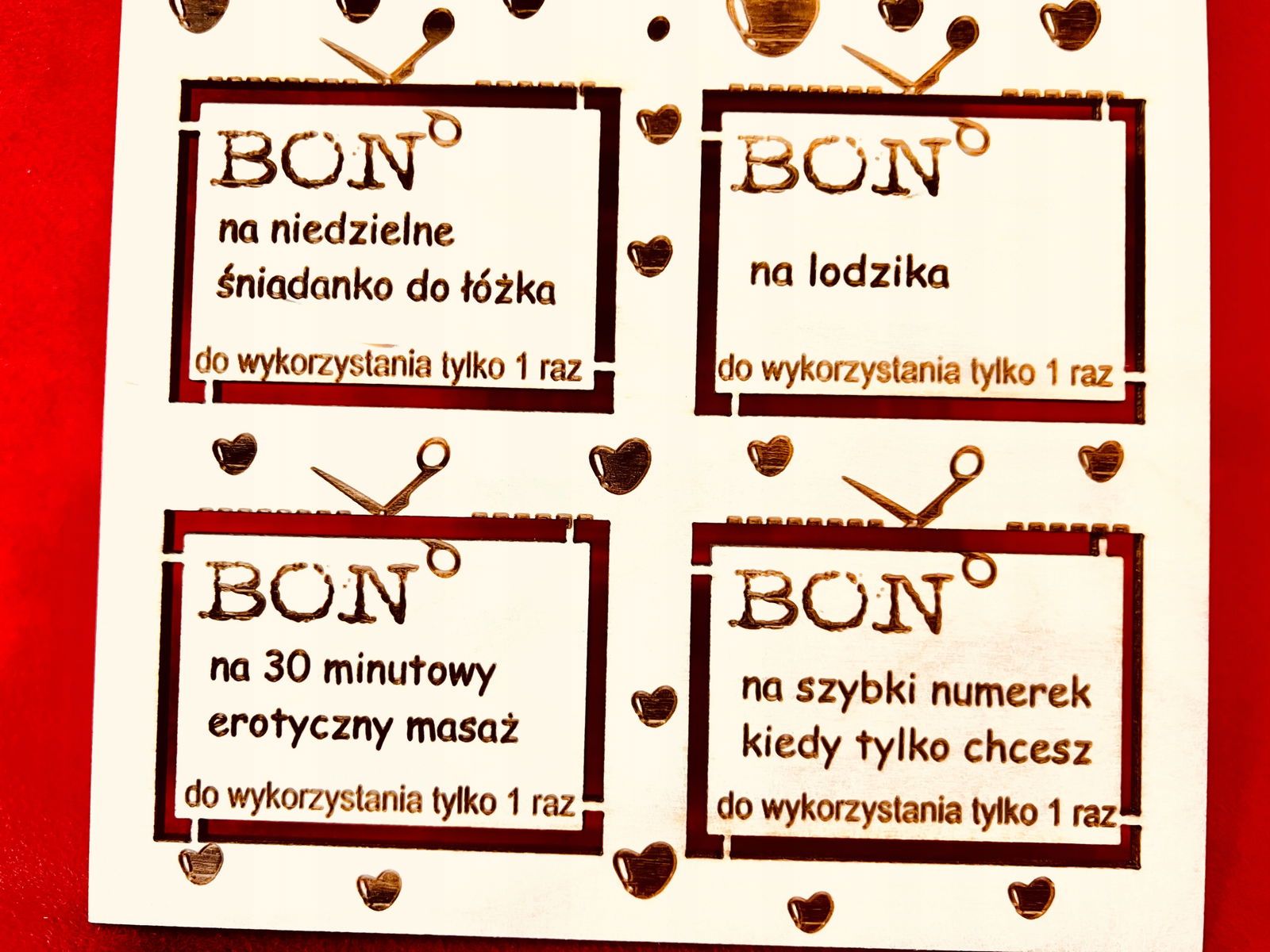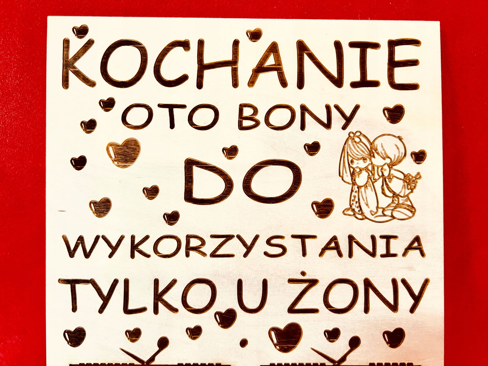 Produkt jest wykonywany na zamówienie, Jeżeli chcesz zmienić sentencje w bonach to nie zapomnij podczas zamawiania napisać jaki tekst mamy wygrawerować w poszczególnych polach.