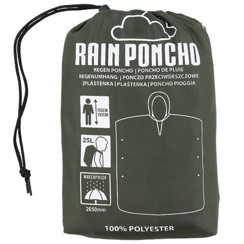 Ponczo przeciwdeszczowe o wymiarach 155-190 cm i wodoodporności 2650 mm to niezawodne rozwiązanie, które zapewnia doskonałą ochronę przed deszczem i wiatrem. Dzięki wysokiej jakości materiałom, praktycznym funkcjom i komfortowi noszenia, jest idealnym wyborem dla każdego, kto potrzebuje skutecznej osłony przed niekorzystnymi warunkami atmosferycznymi.