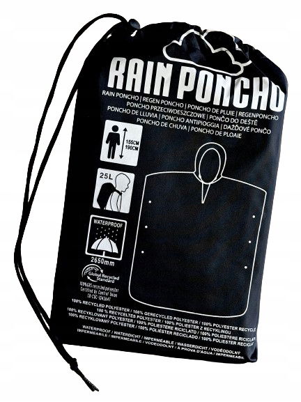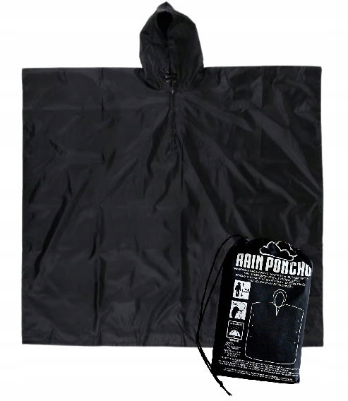 Ponczo PONCHO przeciwdeszczowe 155-190 cm wodoodporne 2650 mm kolor CZARNY