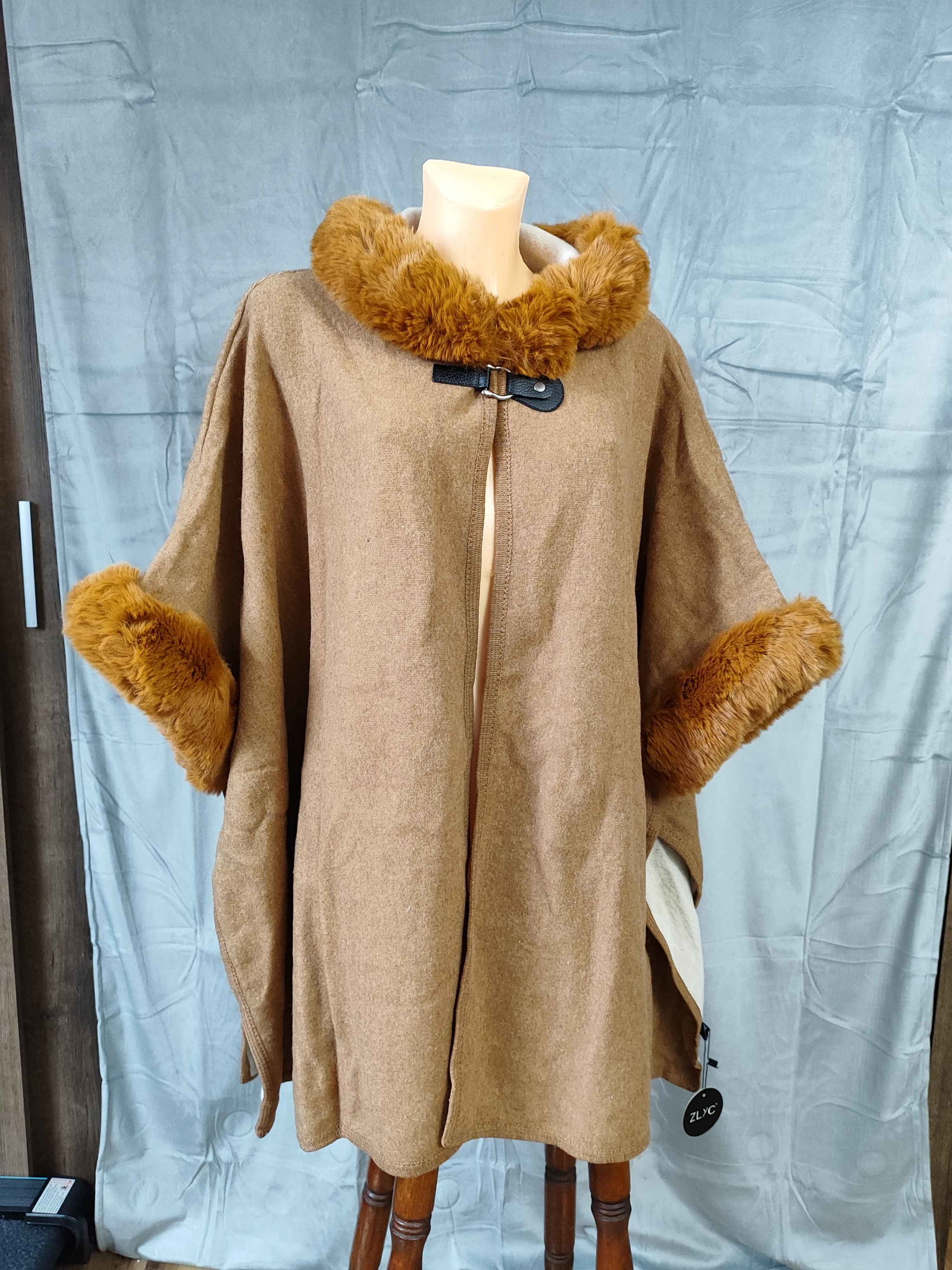 Wyjątkowo elegancka peleryna (poncho) w kolorze ciepłego wielbłądziego brązu (camel). To idealna alternatywa dla płaszcza na sezon jesienno-zimowy. Marka ZLYC słynie z łączenia wygody z luksusowym wykończeniem.