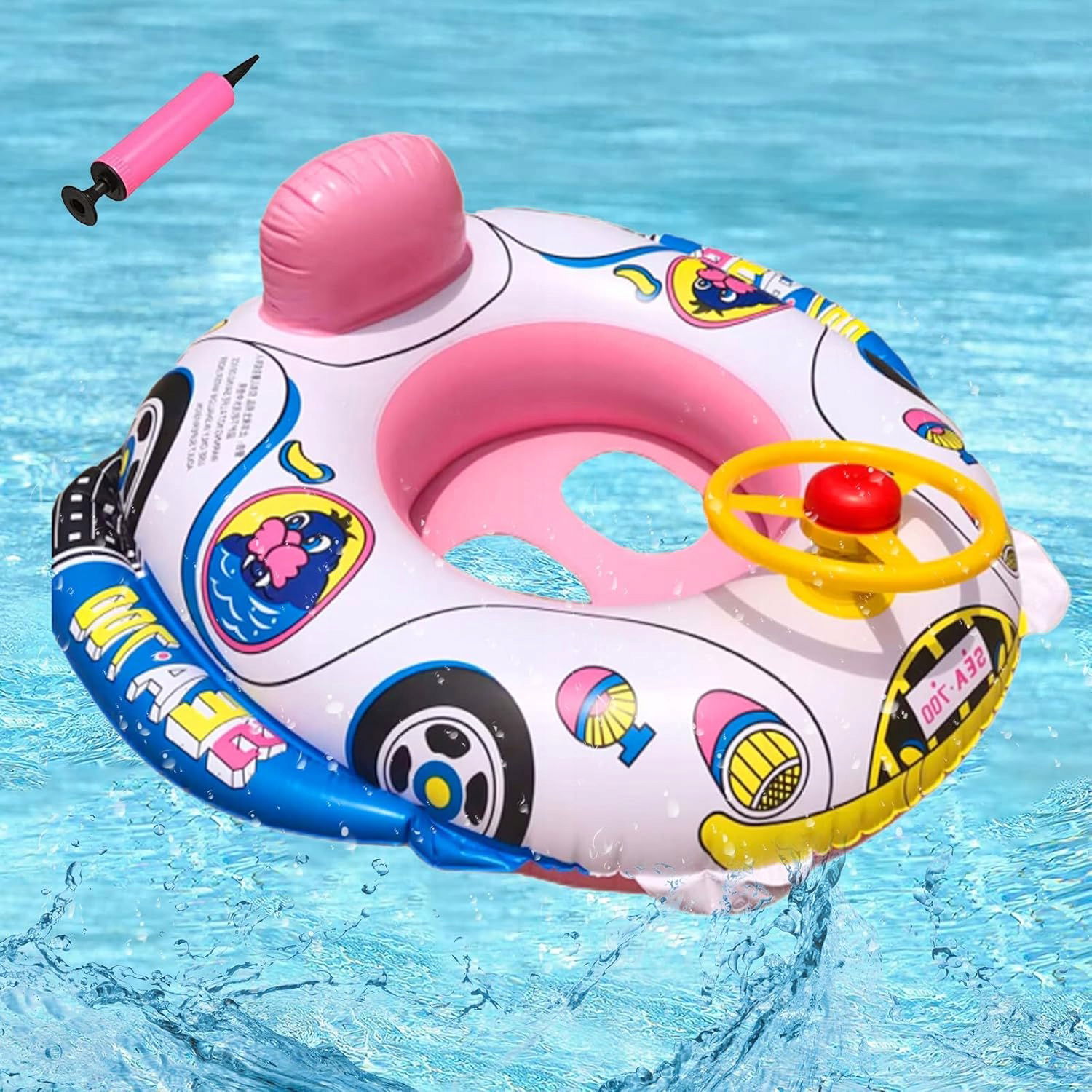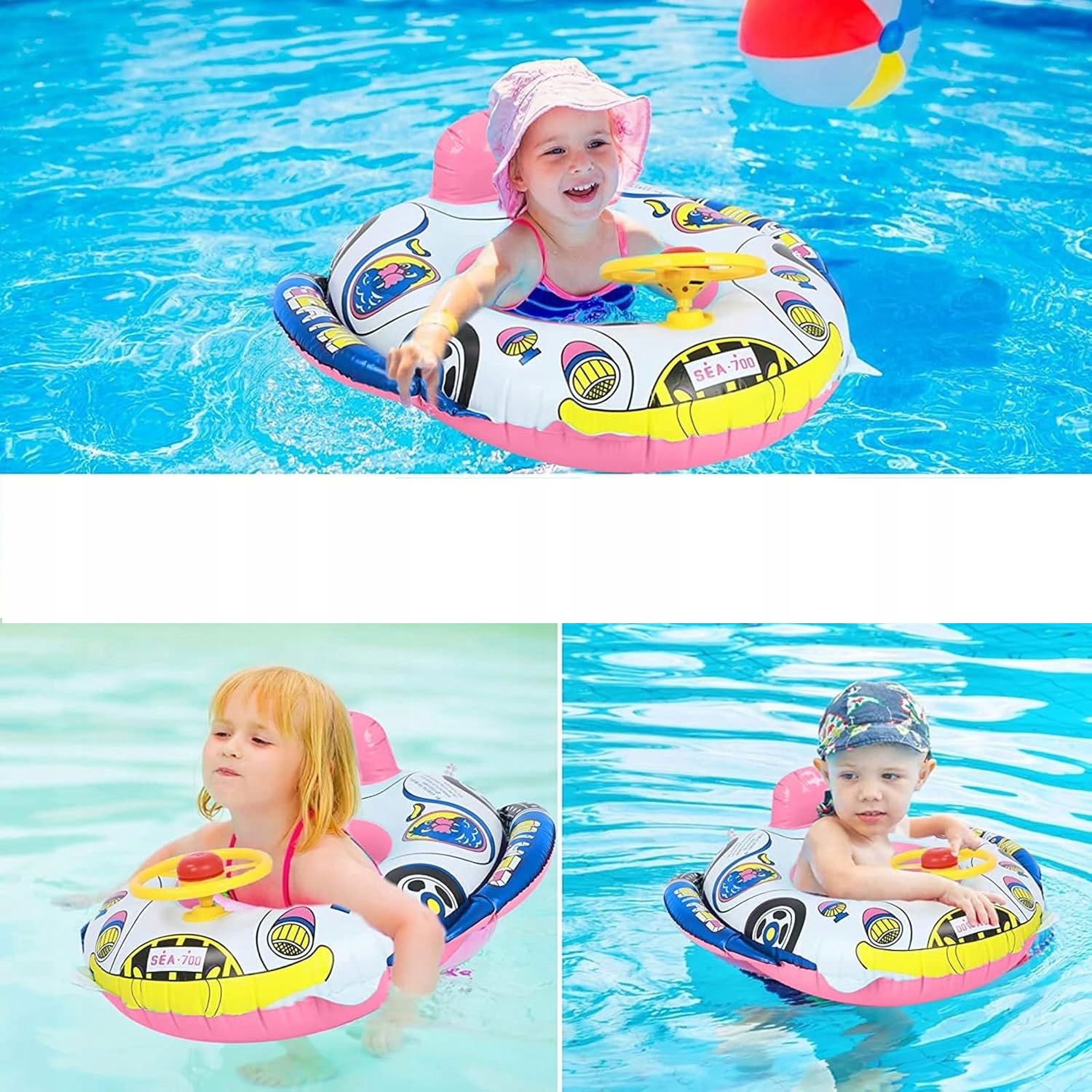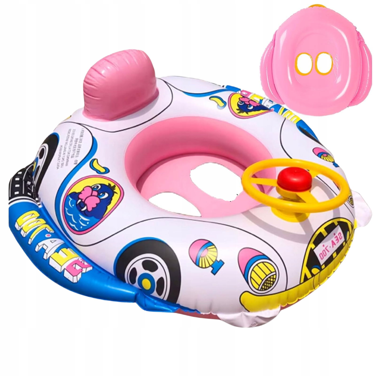 ✅Dmuchany materac w kształcie pontonika z kierownicą dla dzieci zapewni bezpieczeństwo, mnóstwo frajdy podczas kąpieli w basenie lub jeziorze oraz wspomoże naukę pływania.