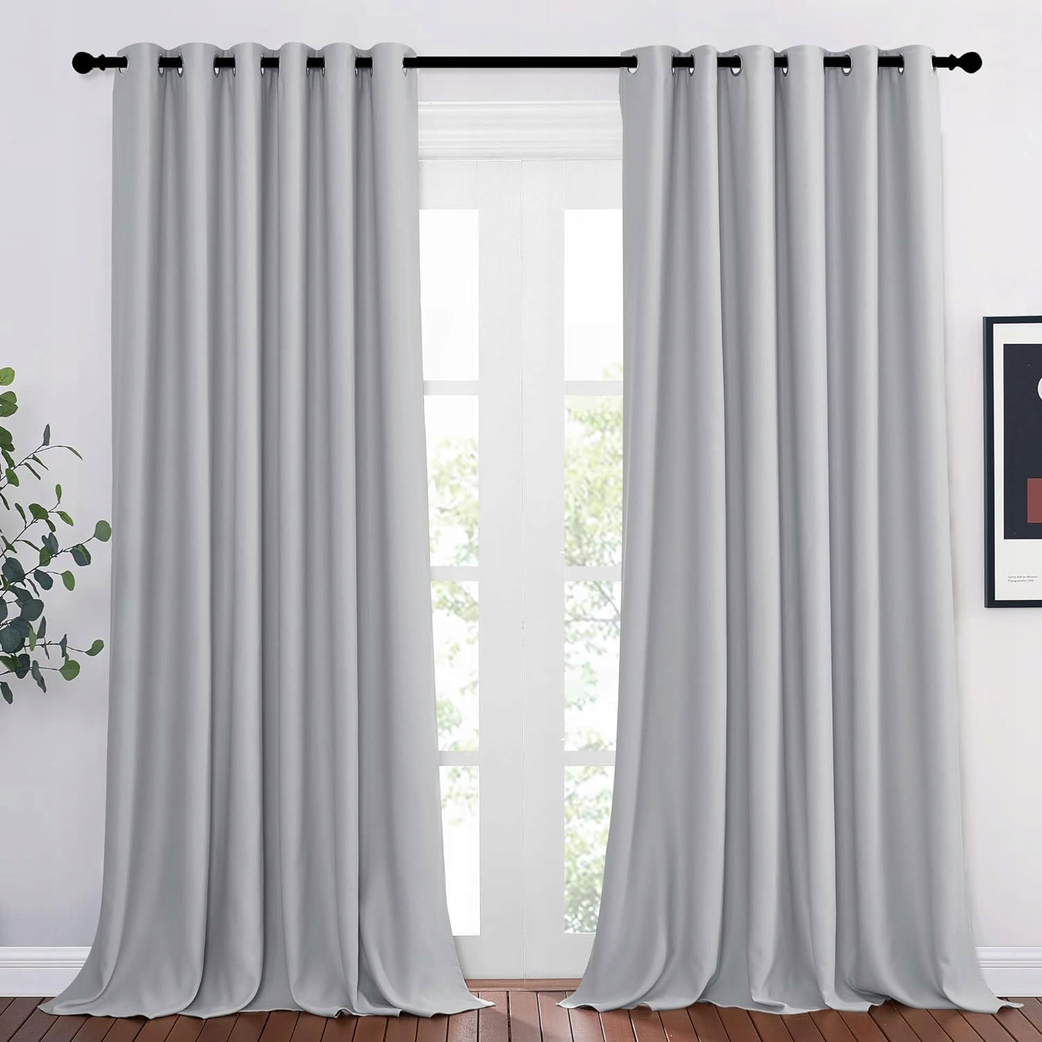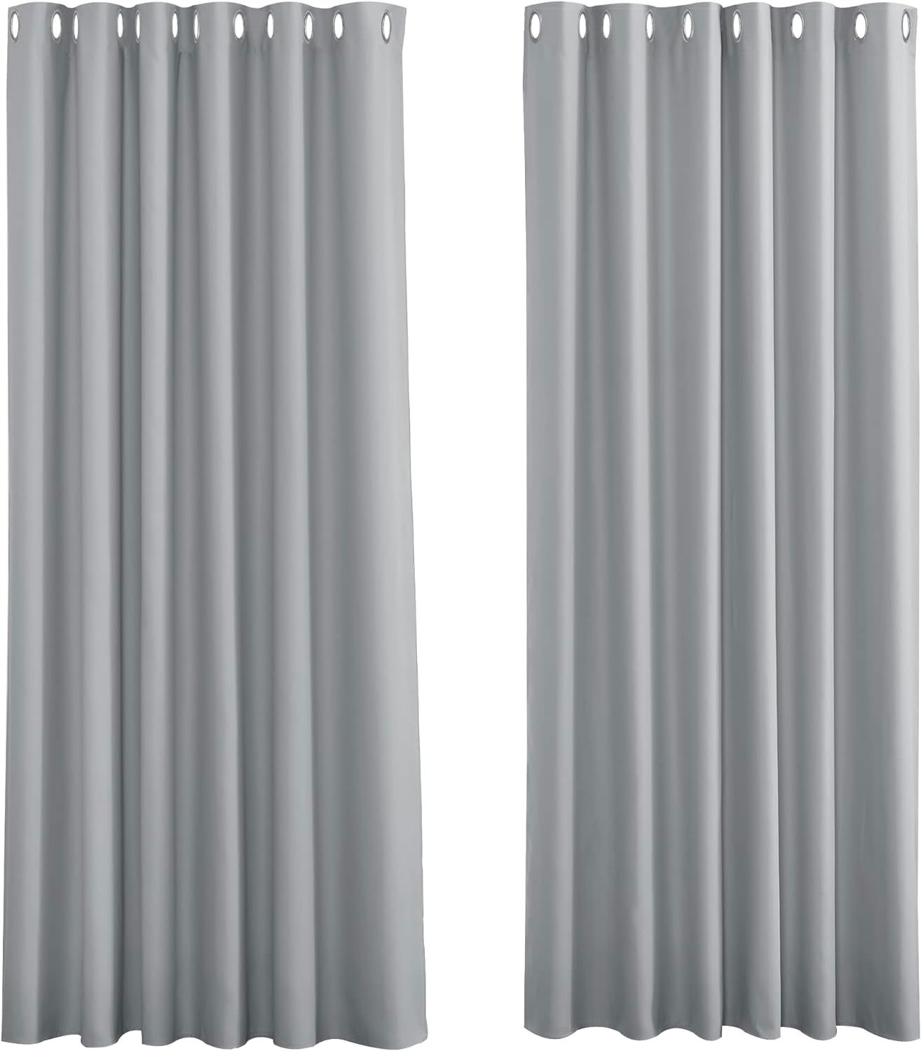 PONY DANCE Bardzo szerokia zasłona do salonu, zasłona z oczkami, wys. 260 x szer. 200 cm, zasłona zaciemniająca, na przelotkach, drzwi balkonowe, srebrnoszare - 1 sztuka.