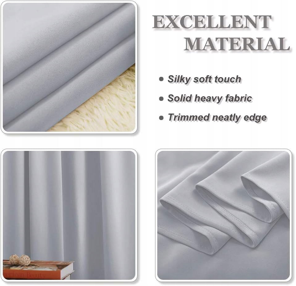- Fantastyczny materiał: Super ciężki i miękki materiał sprawia, że zasłona zaciemniająca jest wysokiej jakości. (Gramatura: 230 g/m²) Ponadto blokuje 60% – 75% światła, izoluje termicznie, redukuje hałas, jest energooszczędna. Obie strony mają ten sam kolor.