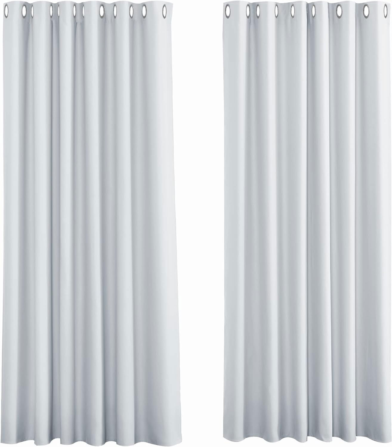 PONY DANCE Bardzo szeroka zasłona do salonu, zasłona z oczkami, wys. 260 x szer. 200 cm, zasłona zaciemniająca, na przelotkach, drzwi balkonowe, białe, nieprzejrzyste, szaro-białe - 1 sztuka.