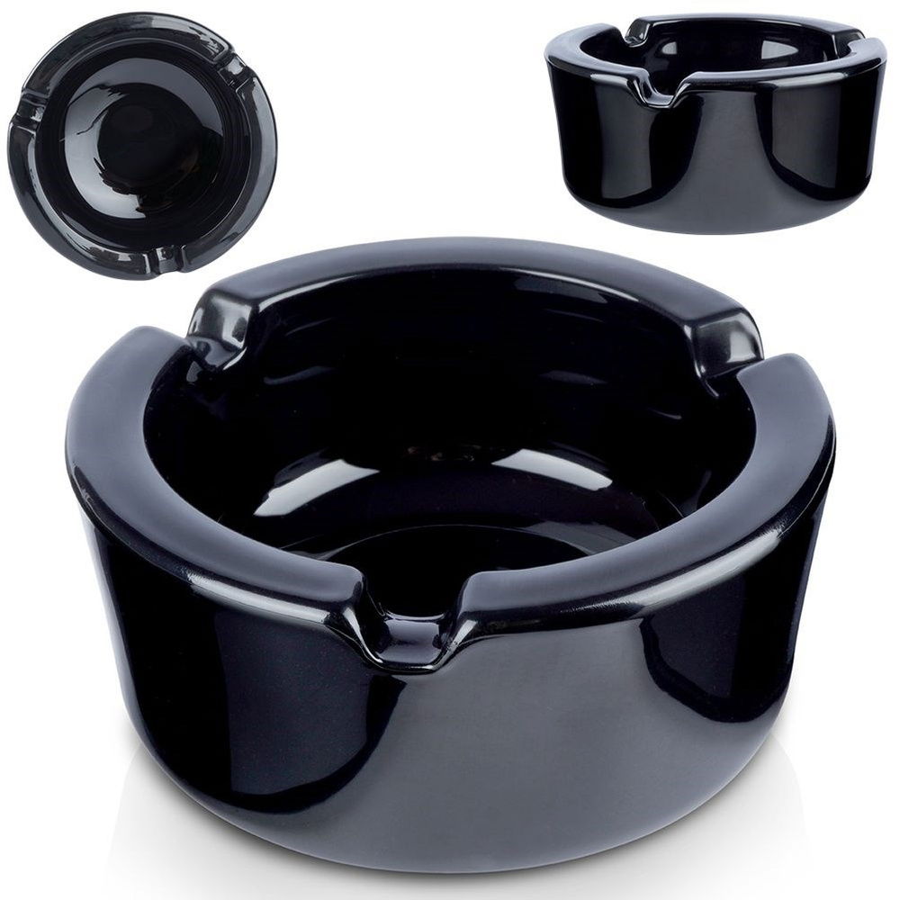 POPIELNICZKA CZARNA SZKLANA OKRĄGŁA POPIELNICA KLASYCZNA 8,5 CM