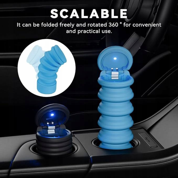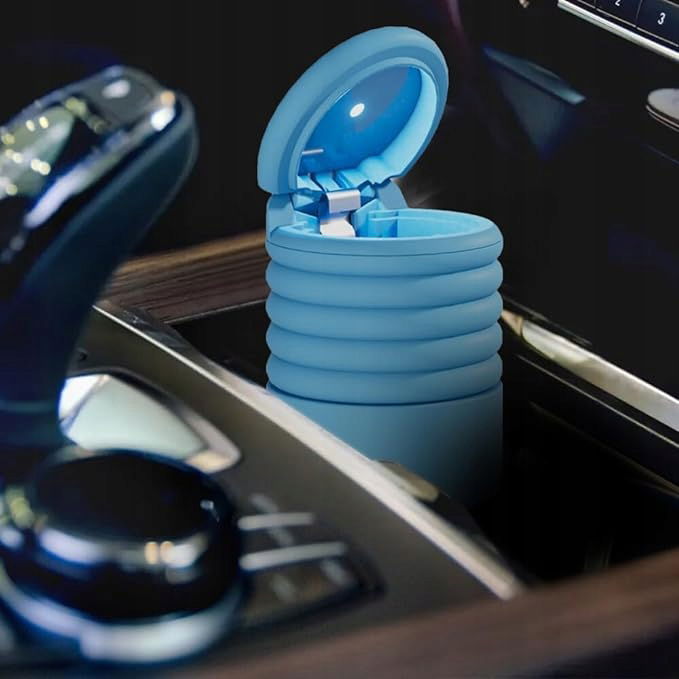 Popielniczka samochodowa Kytpyi, składana obrotowa z lampką LED i pokrywką