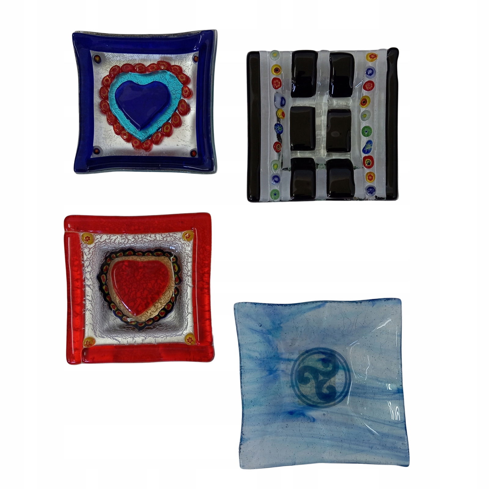 Popielniczka szklana kwadratowa, 8x8 cm, kolorowe szkło.