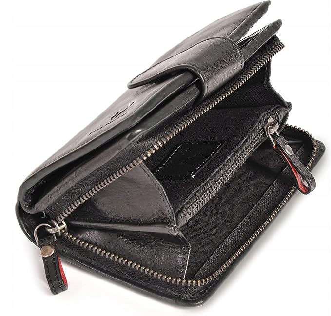 Tysiąc miejsca – kobiety mogą umieścić wszystko na swoim miejscu: portfel damski ma zapinaną na zamek przegrodę na monety oraz 2 dodatkowe przegródki, 8 kart i podwójną przegrodę.