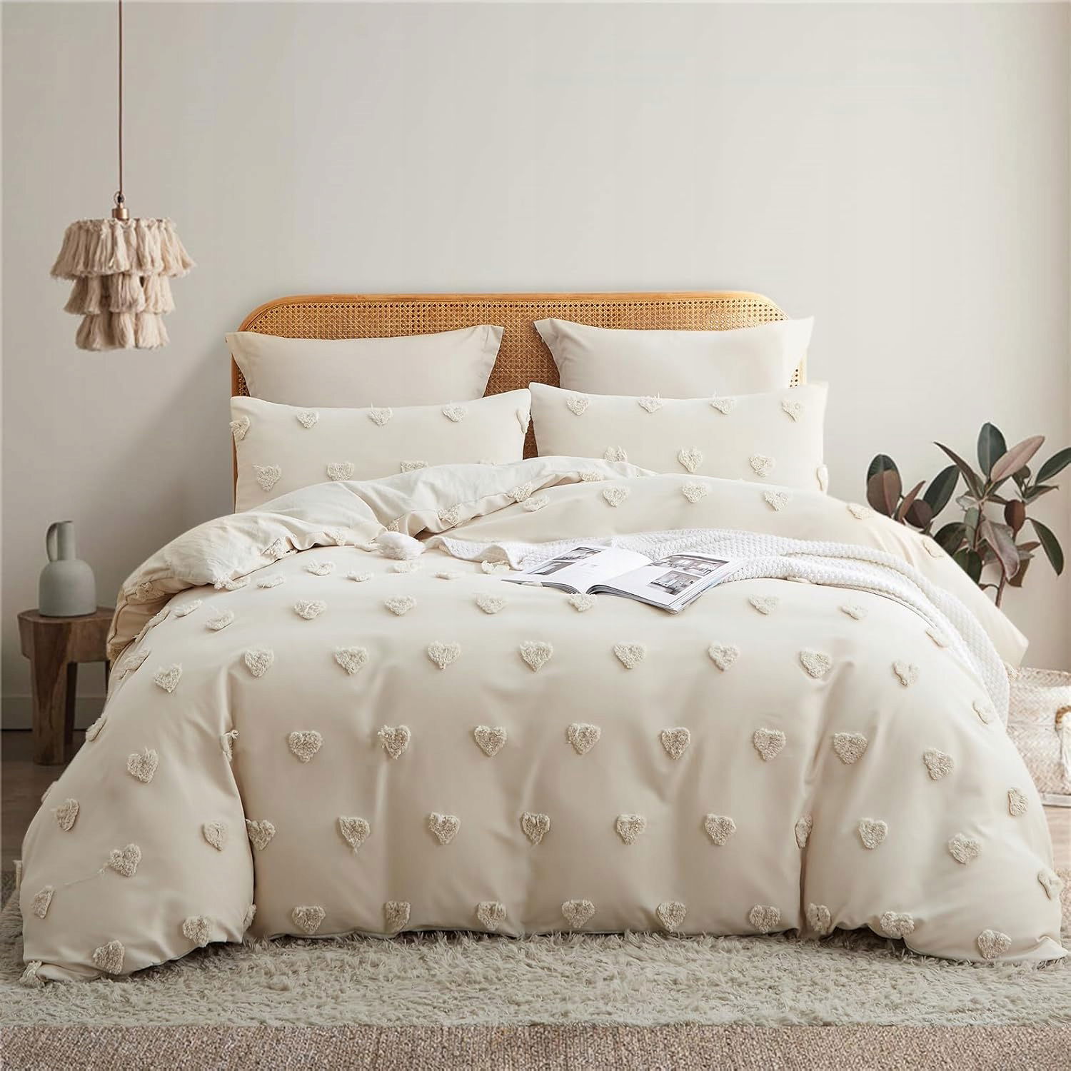 Zestaw pościeli w rozmiarze 200 × 220 cm wyróżnia się dekoracyjnym, ręcznie wykonanym haftem w stylu boho. Subtelny beżowy kolor oraz tuftowana struktura materiału nadają jej wyjątkowy charakter inspirowany stylem vintage i shabby chic. To idealna dekoracja sypialni dla osób ceniących naturalne i przytulne wnętrza.