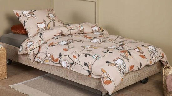 Czy Ty też przepadasz za sowami? Z poszewką na kołdrę Owlsome od Beddinghouse x Hanneke de Jager przeniesiesz się w świat sów. Sowy przedstawione są na tle gałęzi i jesiennych liści w pastelowych kolorach. Poszewka na kołdrę ozdobiona jest pięknymi rysunkami Hanneke de Jager. Poszewka na poduszkę ma ten sam nadruk. Tył ma ten sam nadruk co przód. Opakowanie przyjazne dla środowiska Poszewka na kołdrę dla dzieci zapakowana jest w banderolę FSC, która bezpośrednio otacza komplet. Rozłóż banderolę całkowicie i odkryj kolorowankę, która jest niespodzianką na wewnętrznej stronie opakowania. Czy skończyłeś już pakować? Następnie wyrzuć je razem z makulaturą do recyklingu.