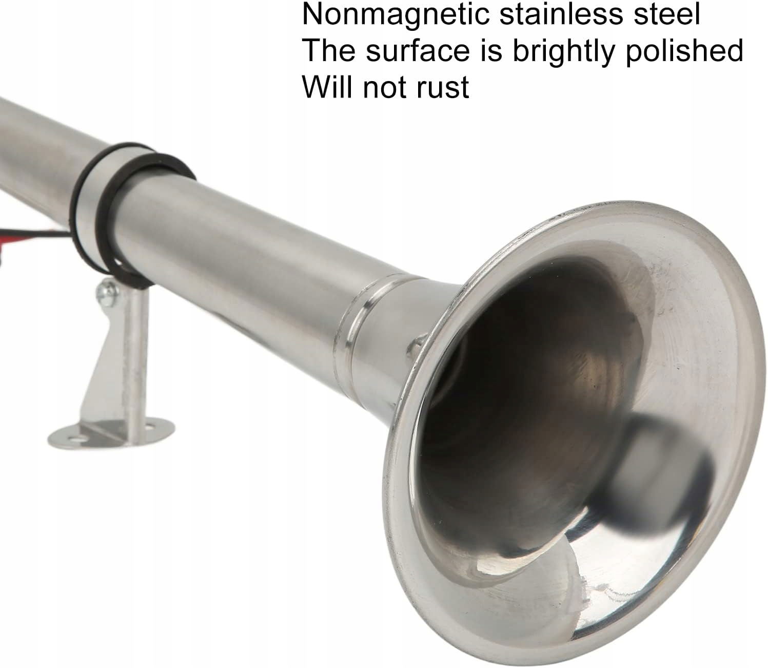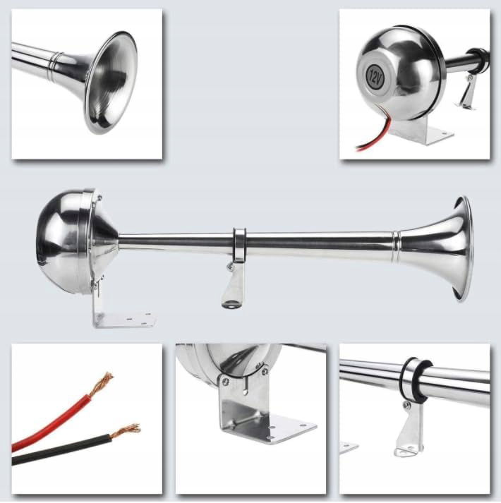 - 【MATERIAŁ PREMIUM】 - Pojedyncza trąbka wykonana jest z niemagnetycznej stali nierdzewnej, a powierzchnia jest polerowana z lustrzanym wykończeniem i nie rdzewieje. Nadaje się do wszystkich warunków pogodowych.