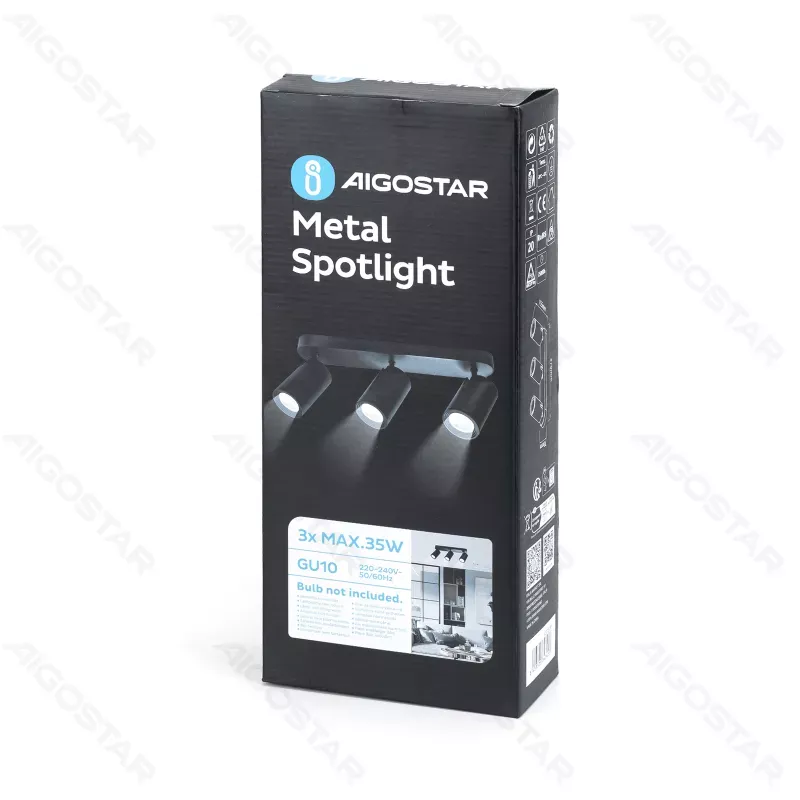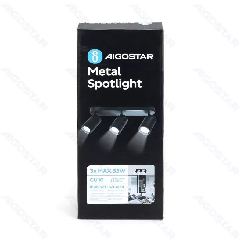 Źródło światła, żarówka 50mm z trzonkiem GU10 do nabycia osobno, parametr maksymalna moc 3*35W ma zastosowanie dla żarówek halogenowych lub wolframowych.