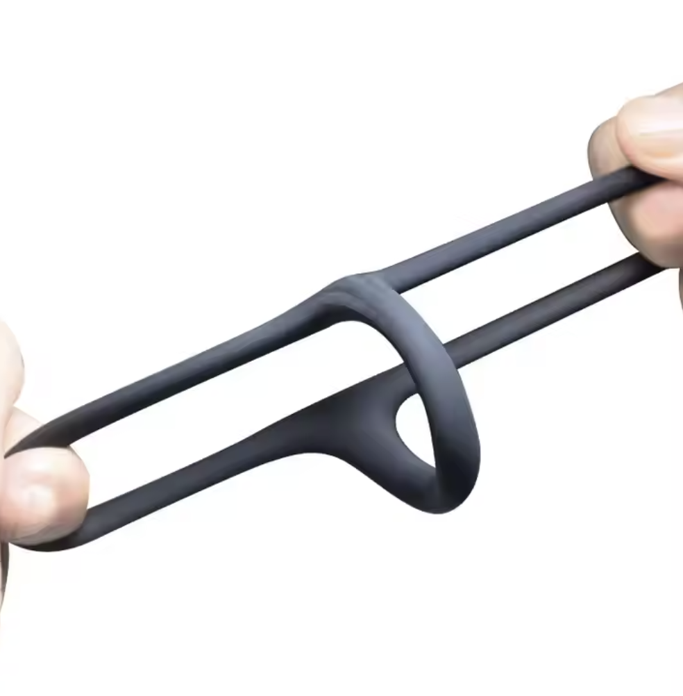 Potrójny pierścień zaciskowy wykonany z elastycznego, bezpiecznego dla skóry silikonu medycznego. Pozwala jednocześnie otoczyć penisa i jądra, poprawiając ukrwienie. Zaprojektowany z myślą o intensywnych doznaniach i wsparciu męskości.
