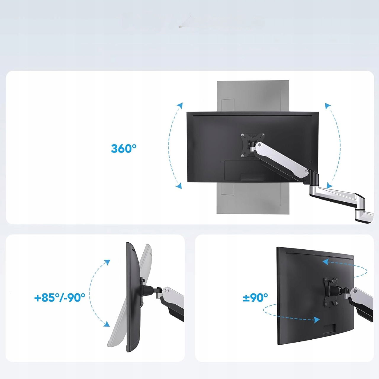 ✅ Szybka i wygodna regulacja możliwość ustawienia monitora w dowolnej pozycji bez konieczności używania narzędzi, dzięki czemu idealnie dopasujesz ekran do swoich potrzeb i unikniesz obciążenia karku oraz pleców.