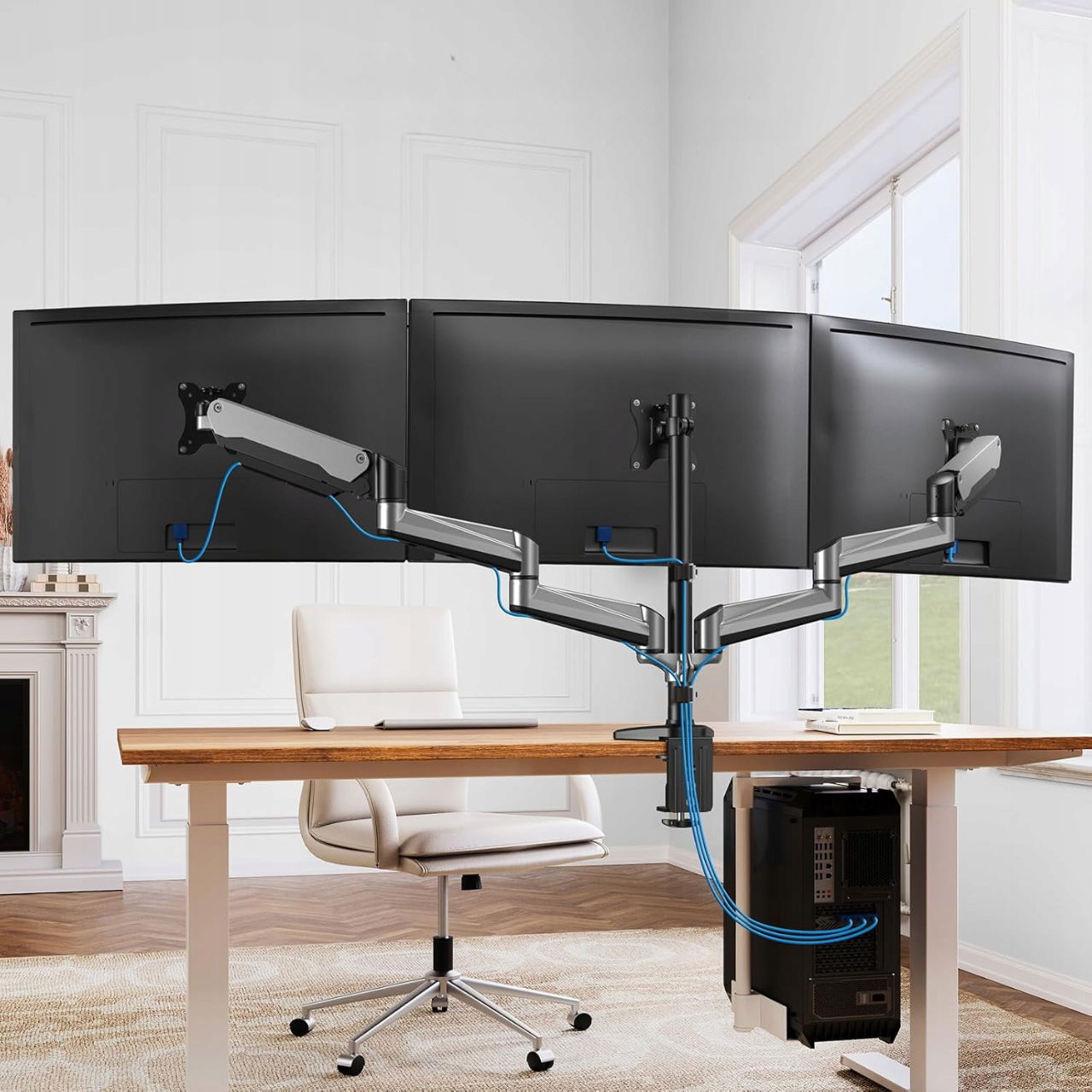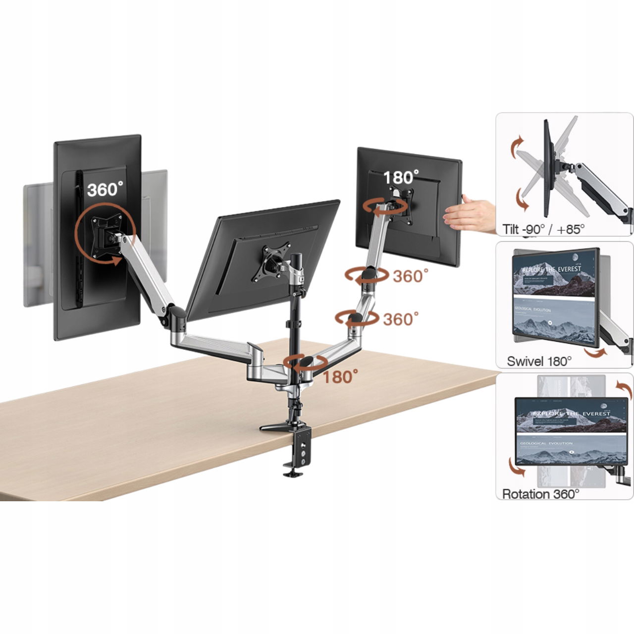 ✅ Obsługa trzech monitorów elegancka konstrukcja umożliwia korzystanie z wielu ekranów jednocześnie, co ułatwia pracę wielozadaniową i zwiększa efektywność.