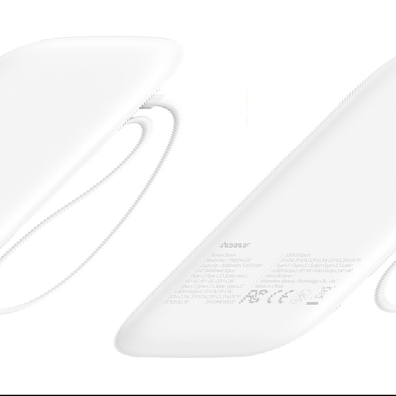 - - Power bank 10000mAh QPow 2 30W z wbudowanymi kablami USB-C - biały