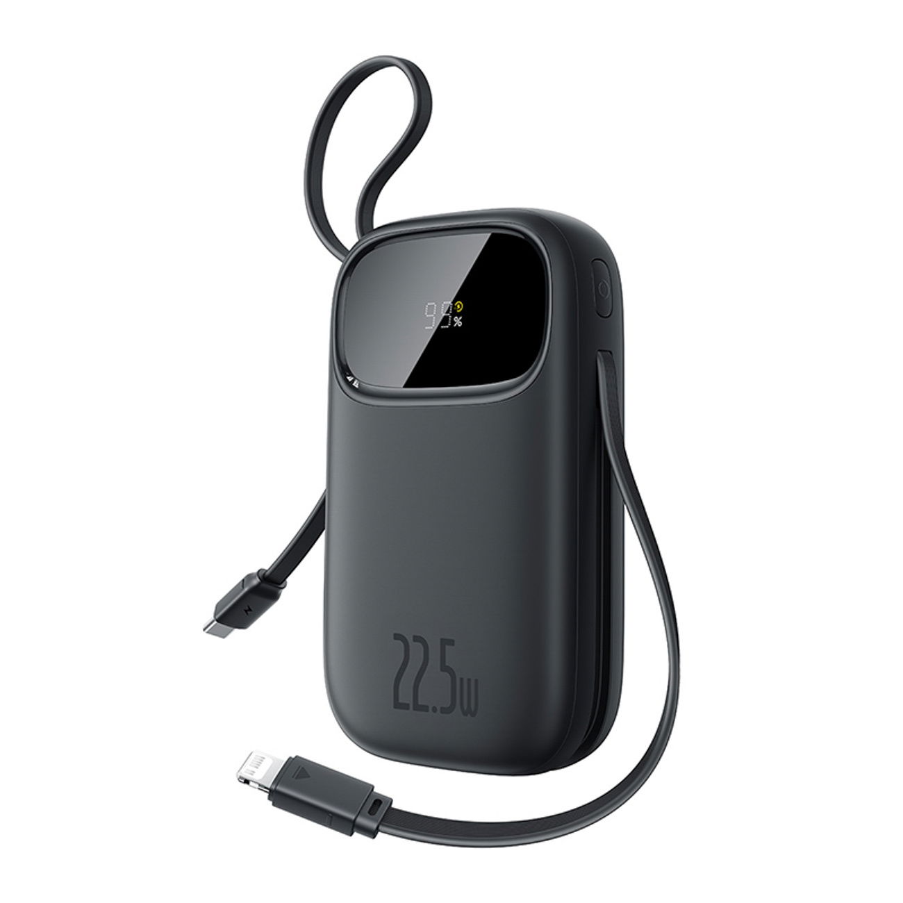 Powerbank 10000mAh 22.5W z wyświetlaczem kablami USB-C iPhone Lightning - czarny