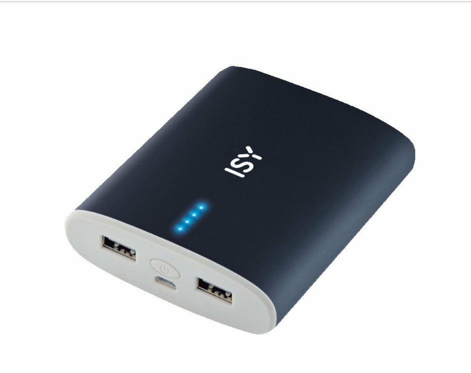 Powerbank ISY IAP 4000 o pojemności 10000 mAh, wyposażony w dwa wyjścia USB. W zestawie kabel micro USB - USB. UWAGA! PRODUKT - powystawowy, minimalne ślady użytkowania