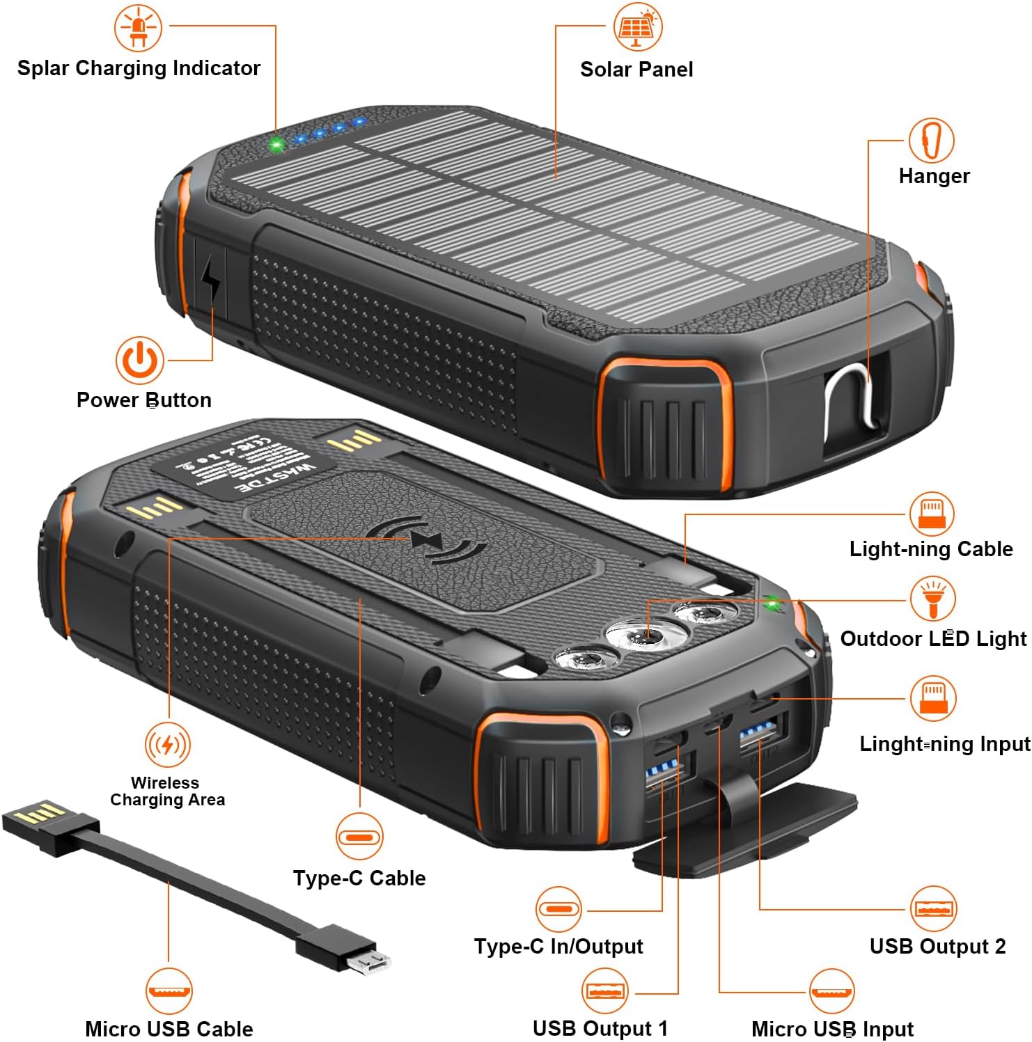 ✅ Bezprzewodowy powerbank solarny o potężnej pojemności 26800 mAh to niezastąpione źródło energii dla każdego miłośnika przygód i survivalu. Zaprojektowany z myślą o trudnych warunkach terenowych, łączy w sobie funkcję banku energii, bezprzewodowej ładowarki oraz wydajnej lampy kempingowej. Dzięki zintegrowanym kablom oraz szerokiej gamie portów, możesz ładować niemal każde urządzenie bez konieczności zabierania ze sobą dodatkowych przewodów. 🔋