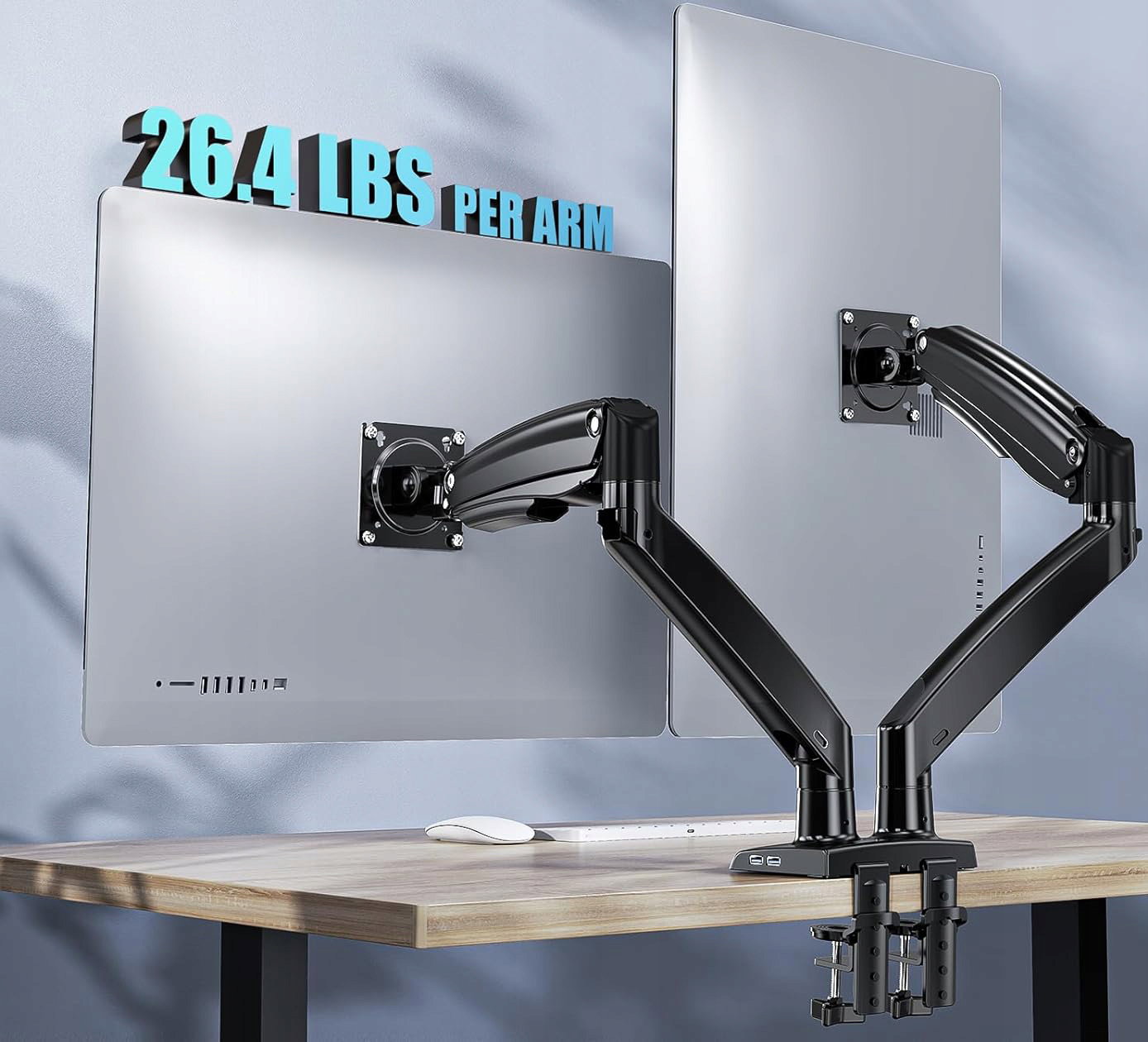 Uchwyt do dwóch monitorów HUANUO HNDS12 to innowacyjne rozwiązanie, które umożliwia pełną personalizację układu pracy, zapewniając doskonałą ergonomię i efektywność. Dzięki elastycznej konstrukcji podwójnych ramion, każdy z monitorów można ustawić niezależnie od siebie. Możliwość dostosowania pozycji monitorów do własnych potrzeb sprawia, że ten uchwyt jest idealny dla profesjonalistów zajmujących się transmisjami na żywo, programowaniem na wielu ekranach, analizą danych oraz edytowaniem wideo. W porównaniu do tradycyjnych stalowych uchwytów, nasz model pozwala na większą swobodę ruchu, co przekłada się na wygodę użytkowania.