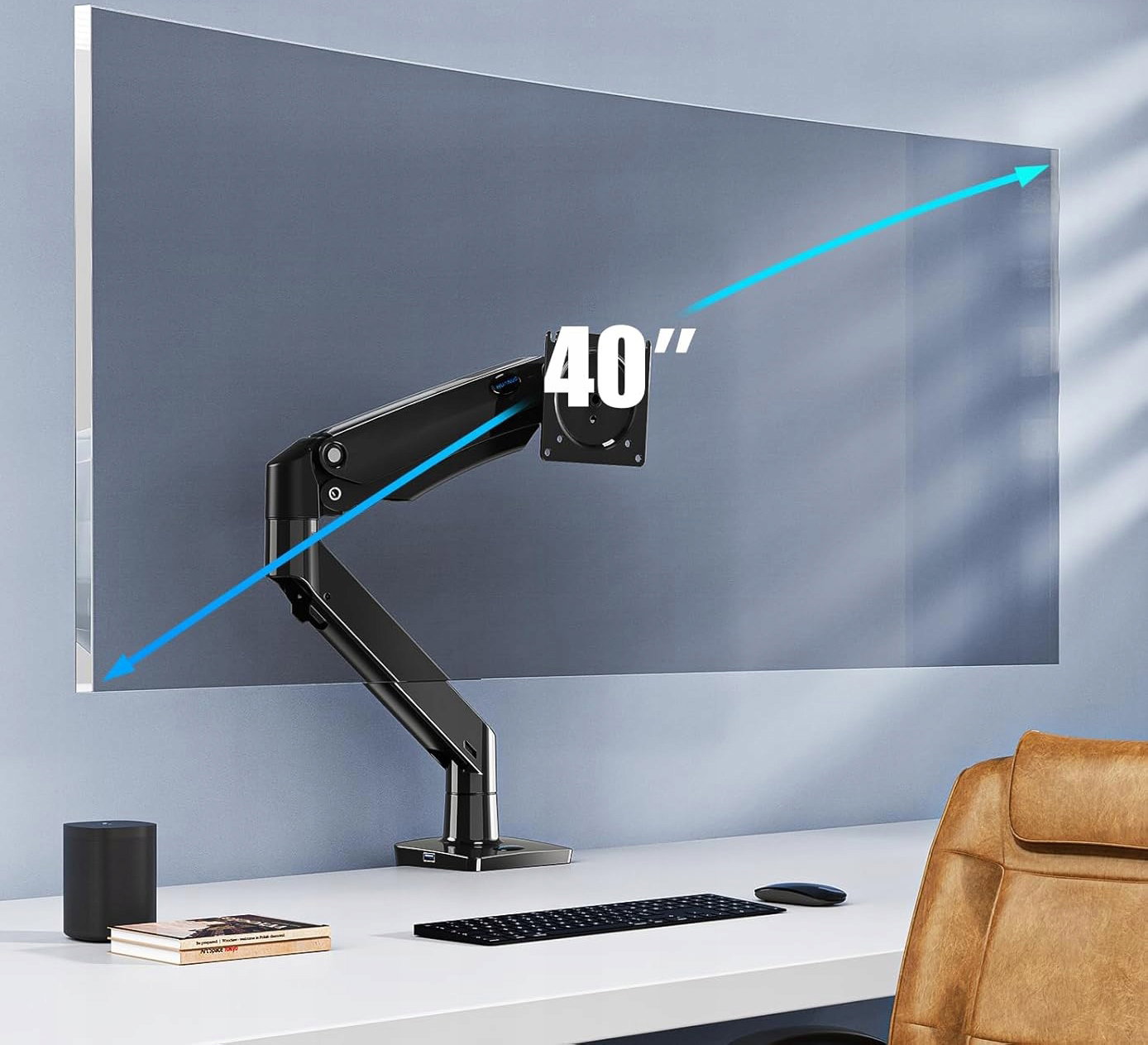 Uchwyt jest zaprojektowany z myślą o monitorach o przekątnej od 15 do 35 cali, a maksymalne obciążenie wynosi 12 kg. Wykorzystujący wzmocnioną ramę z aluminium odlewanego ciśnieniowo i stalowe akcesoria obracające, ten uchwyt zapewnia stabilne i bezpieczne umiejscowienie monitorów. Jakość wewnętrznego rdzenia sprężyny gazowej jest zdecydowanie wyższa niż w tradycyjnych modelach, co przekłada się na większą trwałość oraz możliwość utrzymania monitora w żądanym położeniu bez obaw o jego opadanie.