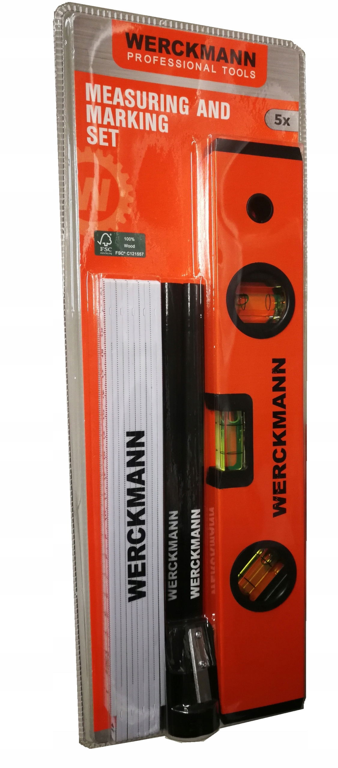Poziomica 300mm Linijka 2m Temperówka 2 Ołówki Profejsonalny Set Werckmann