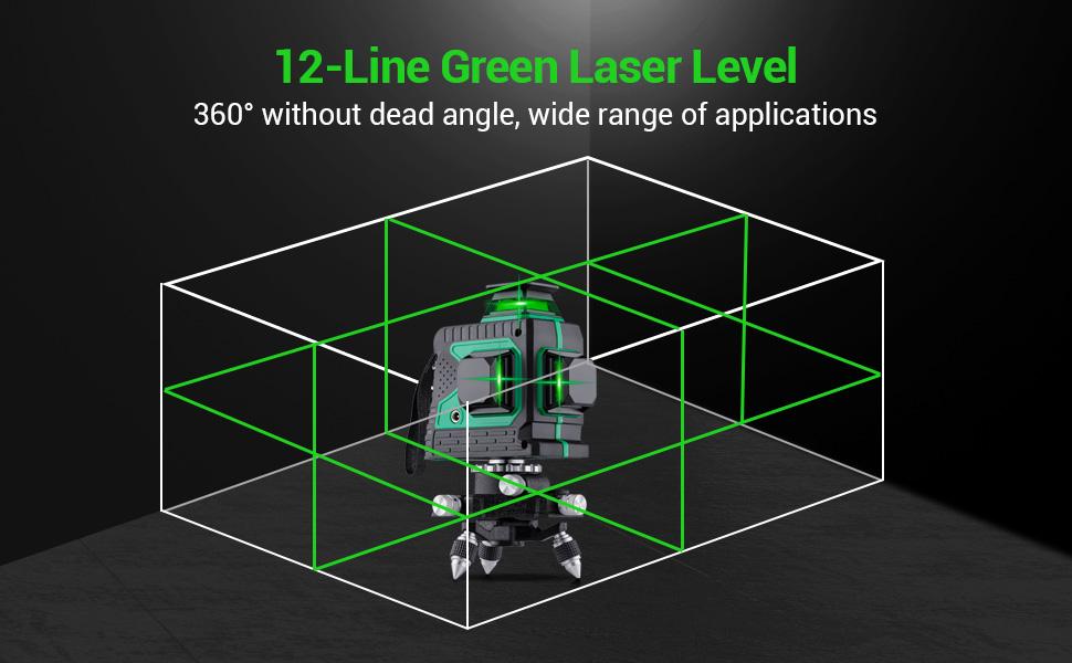 Kompletny 12-stopniowy laser z samopoziomowaniem: Bardzo jasne linie poziome 1 × 360° i pionowe linie 2 × 360° zapewniają dodatkowe korzyści w przypadku sufitu, transferu punktów, poziomowania, wyrównania, instalacji hydraulicznych i kwadratowych w zależności od potrzeb użytkownika.