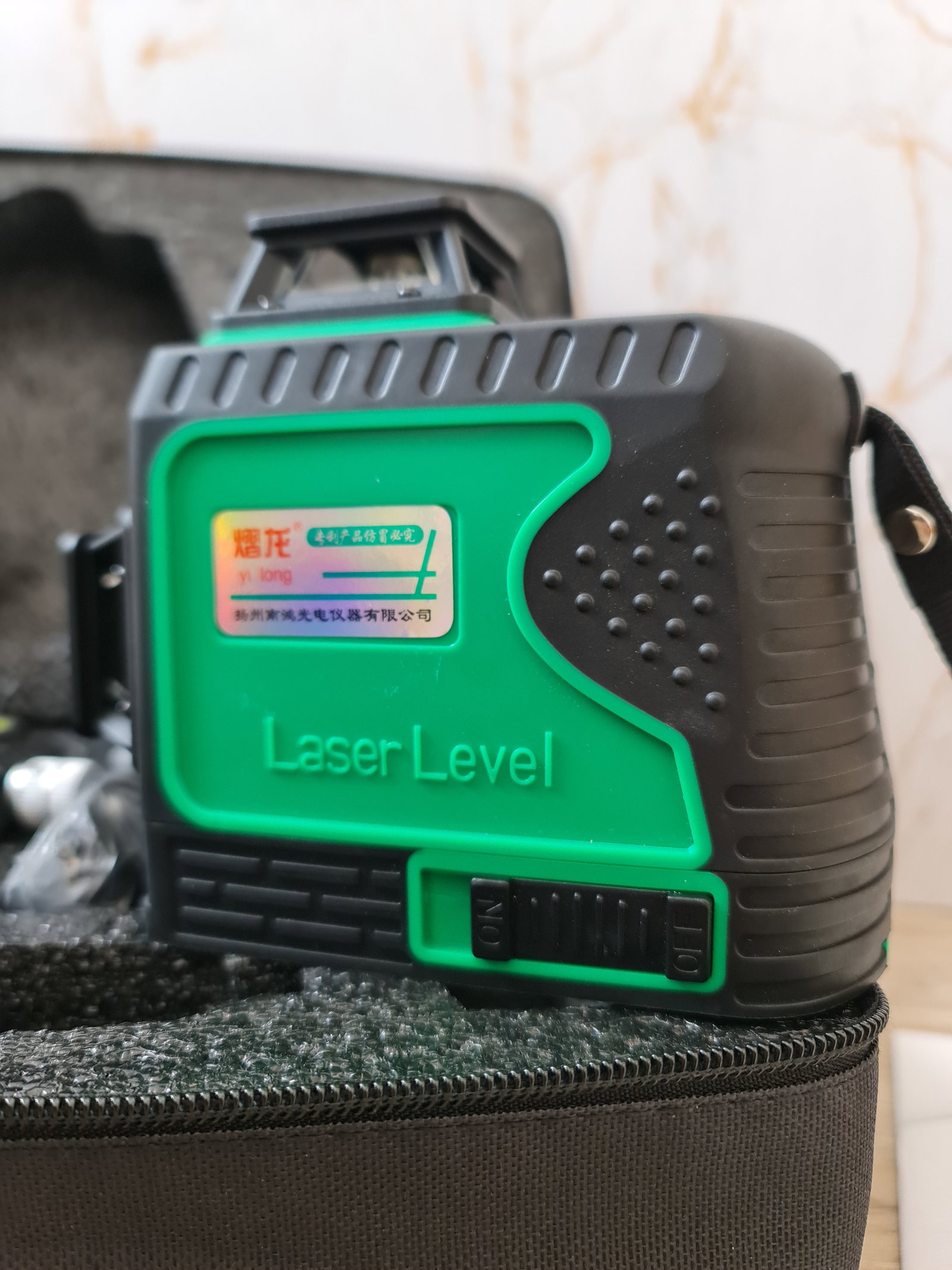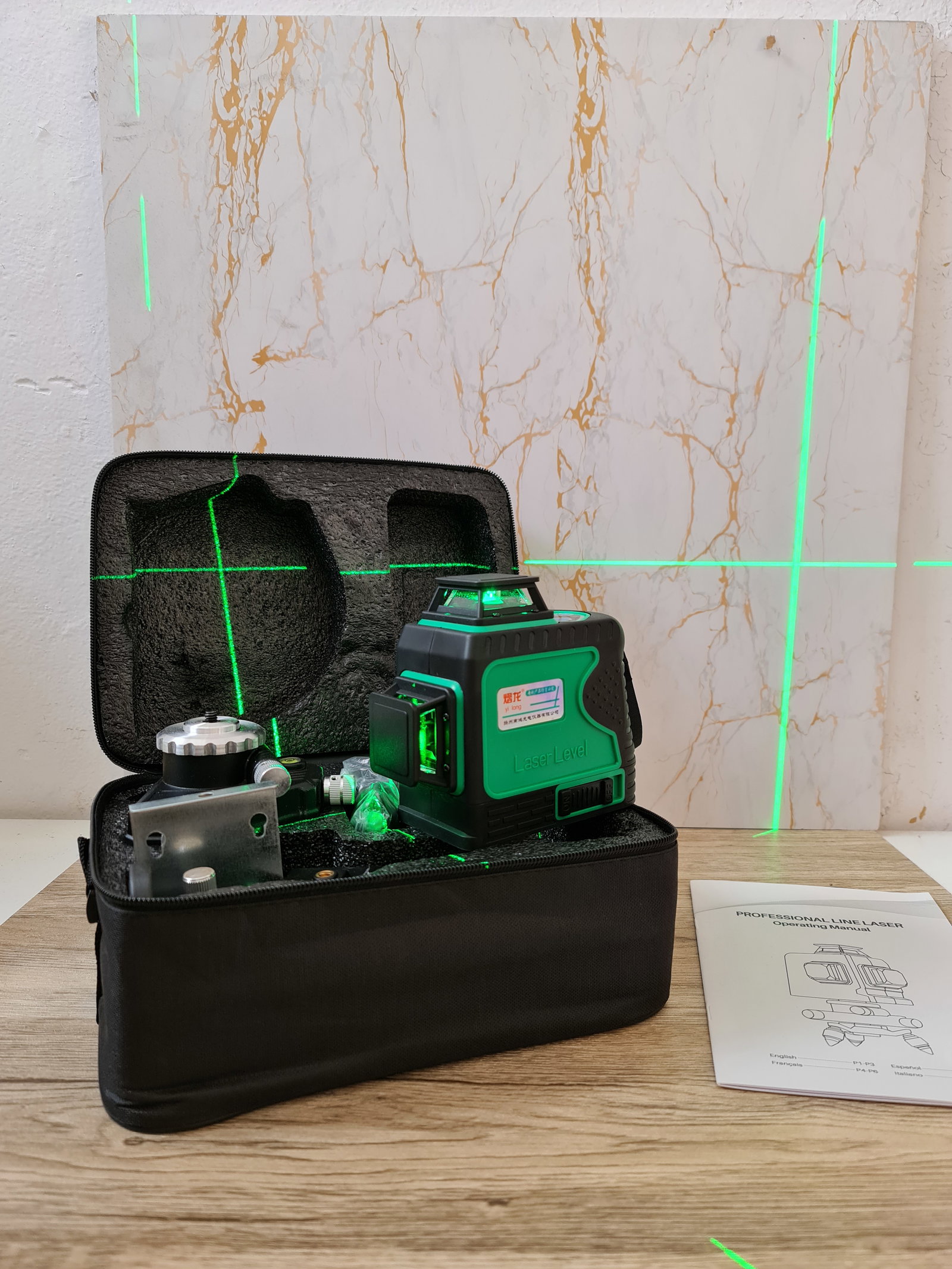Samopoziomowanie w zakresie 3°: kąt nachylenia ≤ 3°, płaszczyzna lasera jest automatycznie poziomowana, w przeciwnym razie rozlega się ciągły alarm akustyczny, aby pokazać, że ustawienia nie są prawidłowe.