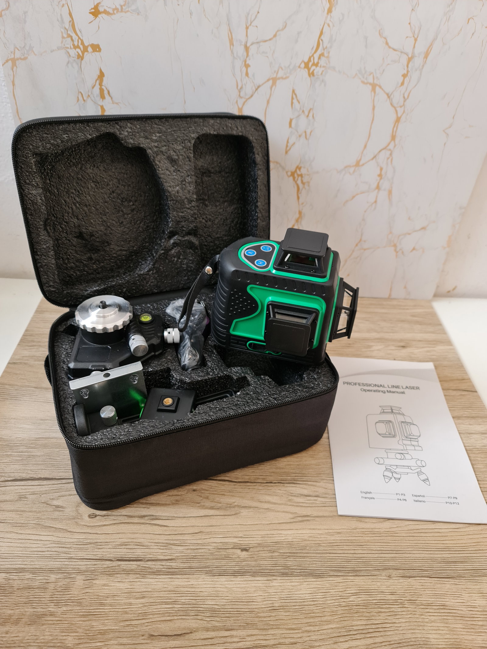 Poziomica Laser liniowy, 12 linii, laser krzyżowy, 3 x 360, samopoziomujący