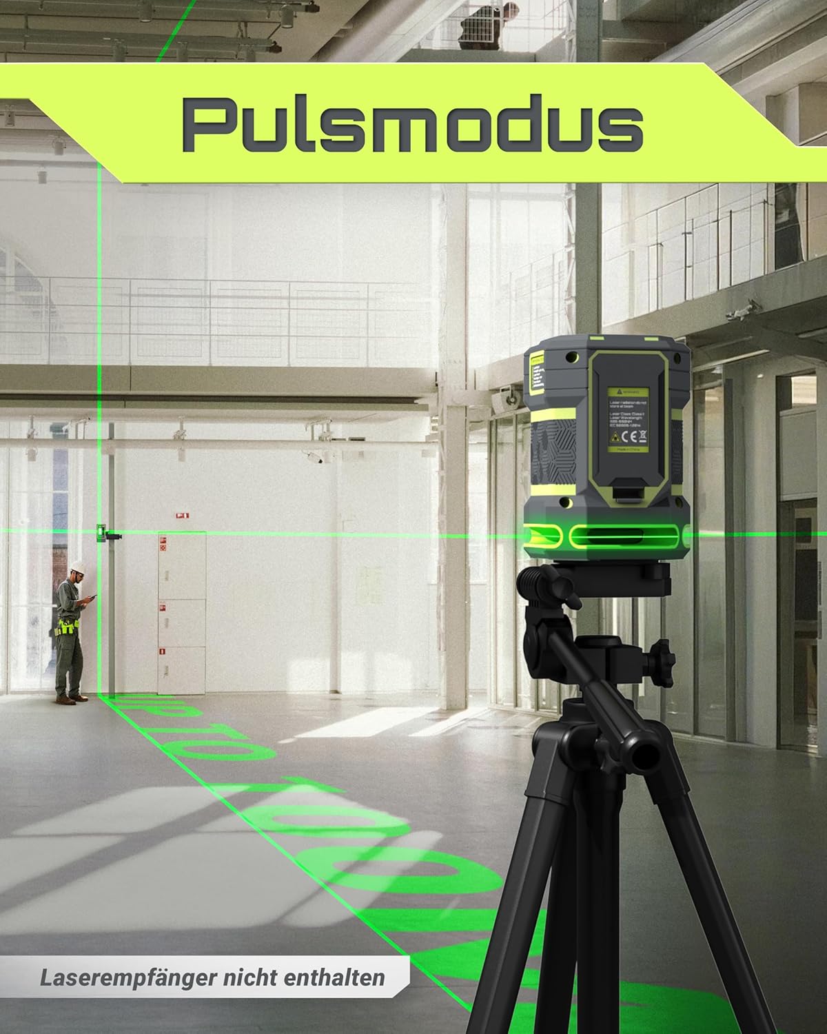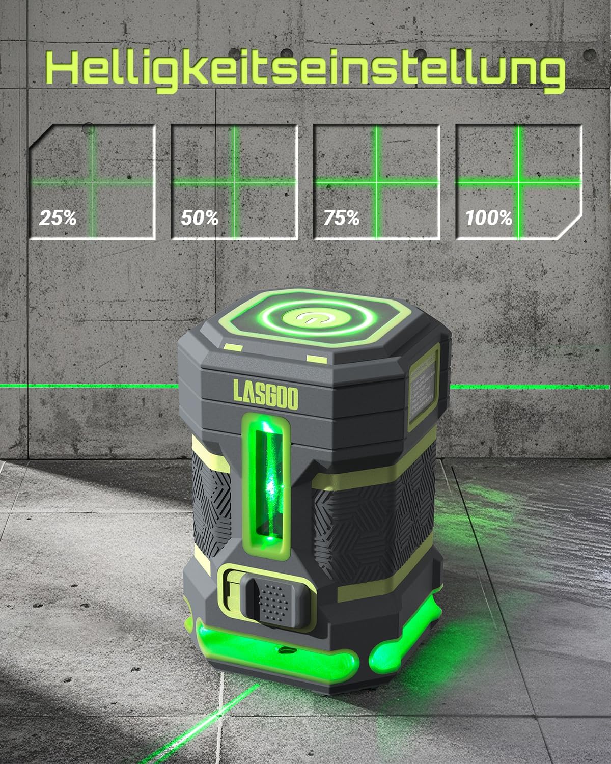 Zielona linia krzyżowa lasera oferuje wyjątkową precyzję dzięki poziomej wiązce 360° i pionowej 120°. Dzięki czterokrotnie większej jasności zielonego lasera, pomiary są niezwykle dokładne, a praca staje się prostsza i szybsza.