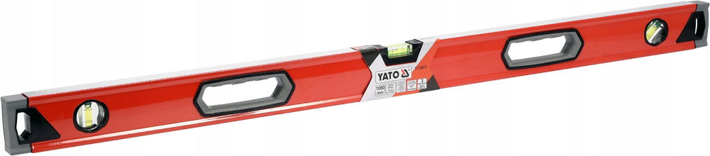 Wyposażona w 3 libelle wykonane ze szkła akrylowego, wypełnione wzmagającym widoczność, żółtym płynem. Libelle wskazują pion, poziom oraz kąt 45°. Oprawione w tworzywo absorbujące uderzenia.