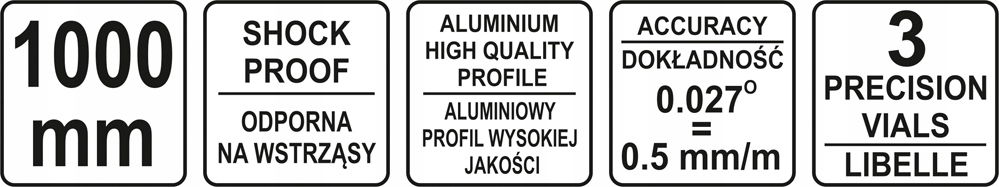 Poziomnica wykonana ze stabilnego profilu aluminiowego. Posiada dwie precyzyjnie, frezowane płaszczyzny pomiarowe. Dokładność wskazań poziomnicy to 0,5 mm/m.