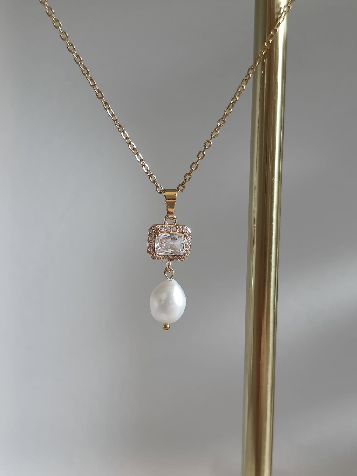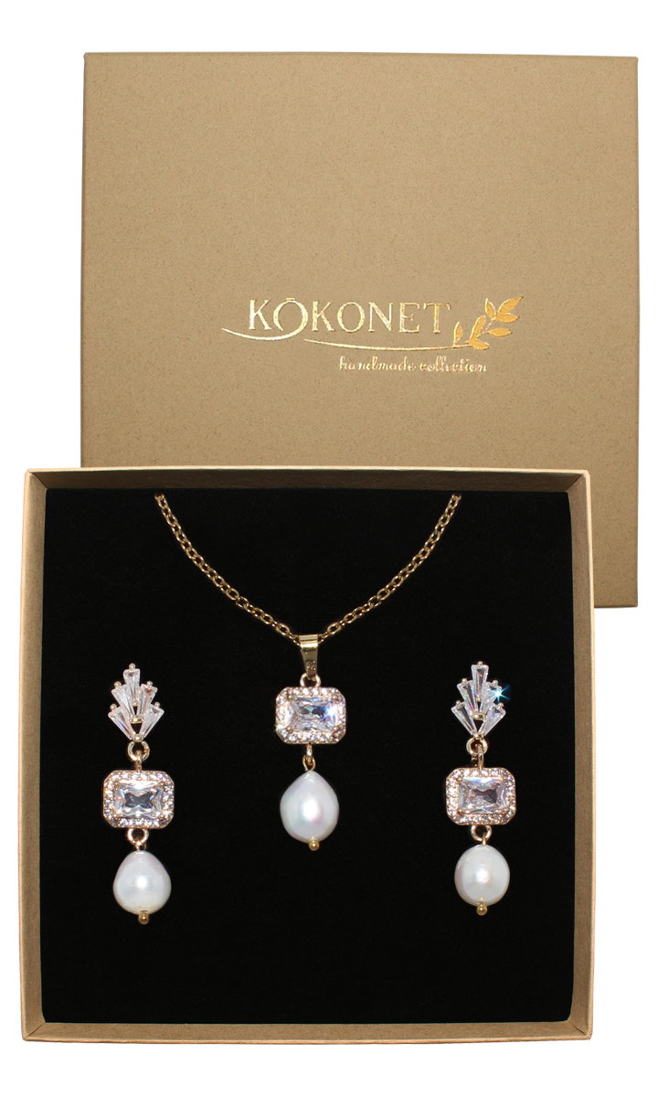 Szukasz złotego zestawu biżuterii ślubnej składającego się z kolczyków i naszyjnika? MARTINA łączy w sobie klasę, delikatność i niepowtarzalny styl. Ręcznie robione kolczyki i naszyjnik z perłą słodkowodną i kryształową aplikacją powstały z dbałością o każdy detal, co gwarantuje wysoką jakość. Każda perła posiada swój unikalny kształt i elegancki połysk, co sprawia, że akcesoria te zasługują na wybór na specjalne okazje.