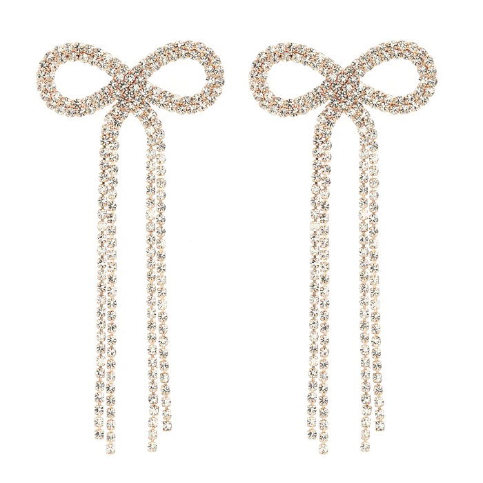 Pozłacane kolczyki kokardki długie cyrkonie sztyfty eleganckie złote BOHO
