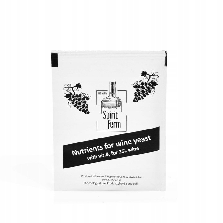 Pożywka winiarska SpiritFerm z witaminą B jest dedykowana do wszelkiego rodzaju win, zapewniając optymalny rozwój drożdży i wspomagając ich efektywną pracę.