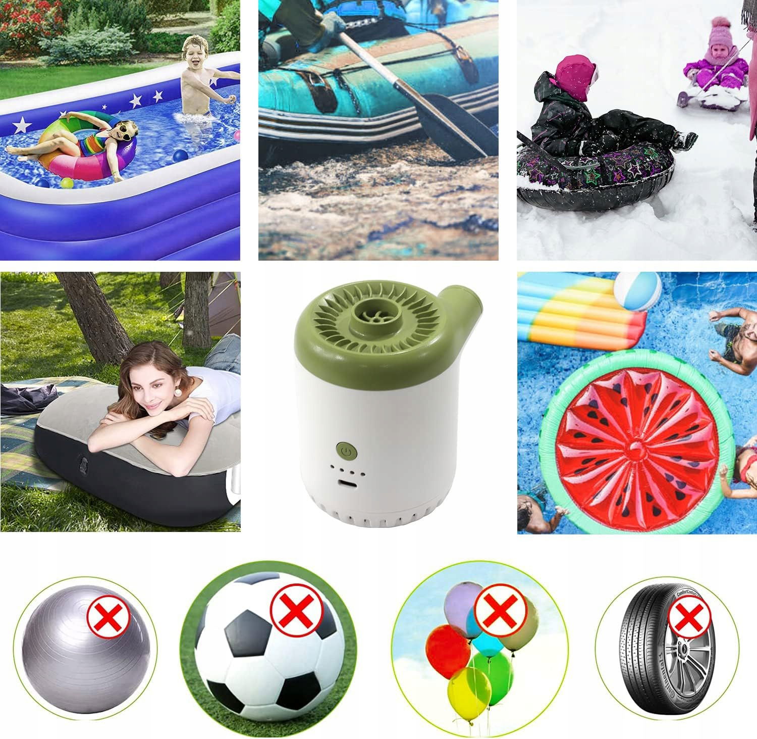 Wydajny i niezawodny - silnik premium znacznie redukuje hałas podczas pracy. Wysokie ciśnienie i szybka konstrukcja zapewniają bardziej wydajne doświadczenie nadmuchiwania. Zaoszczędź więcej czasu na zabawę. Nadmuchiwana pompa basenowa jest przenośna i lekka, dobra do ogrodu, domu, kempingu, turystyki turystycznej, wakacji itp. Uwaga: Nie należy stale używać pompy przez 20 minut, aby uniknąć przegrzania.