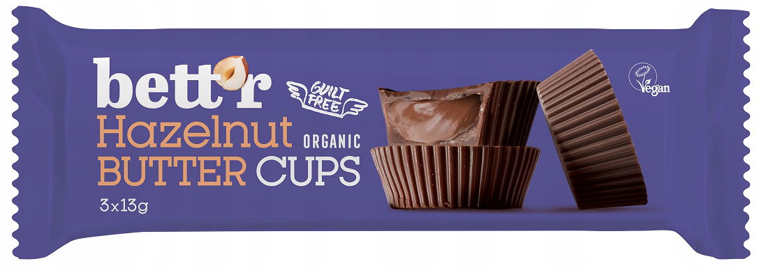 Nazwa handlowa: BIO babeczki z czekolady CUPS z nadzieniem z orzechów laskowych wegańskie 39 g